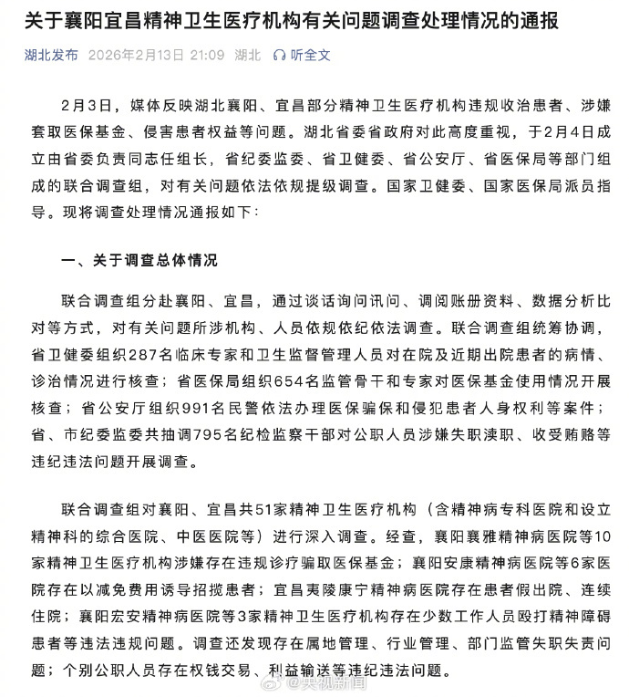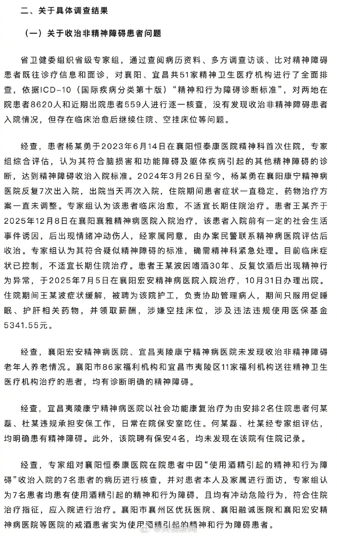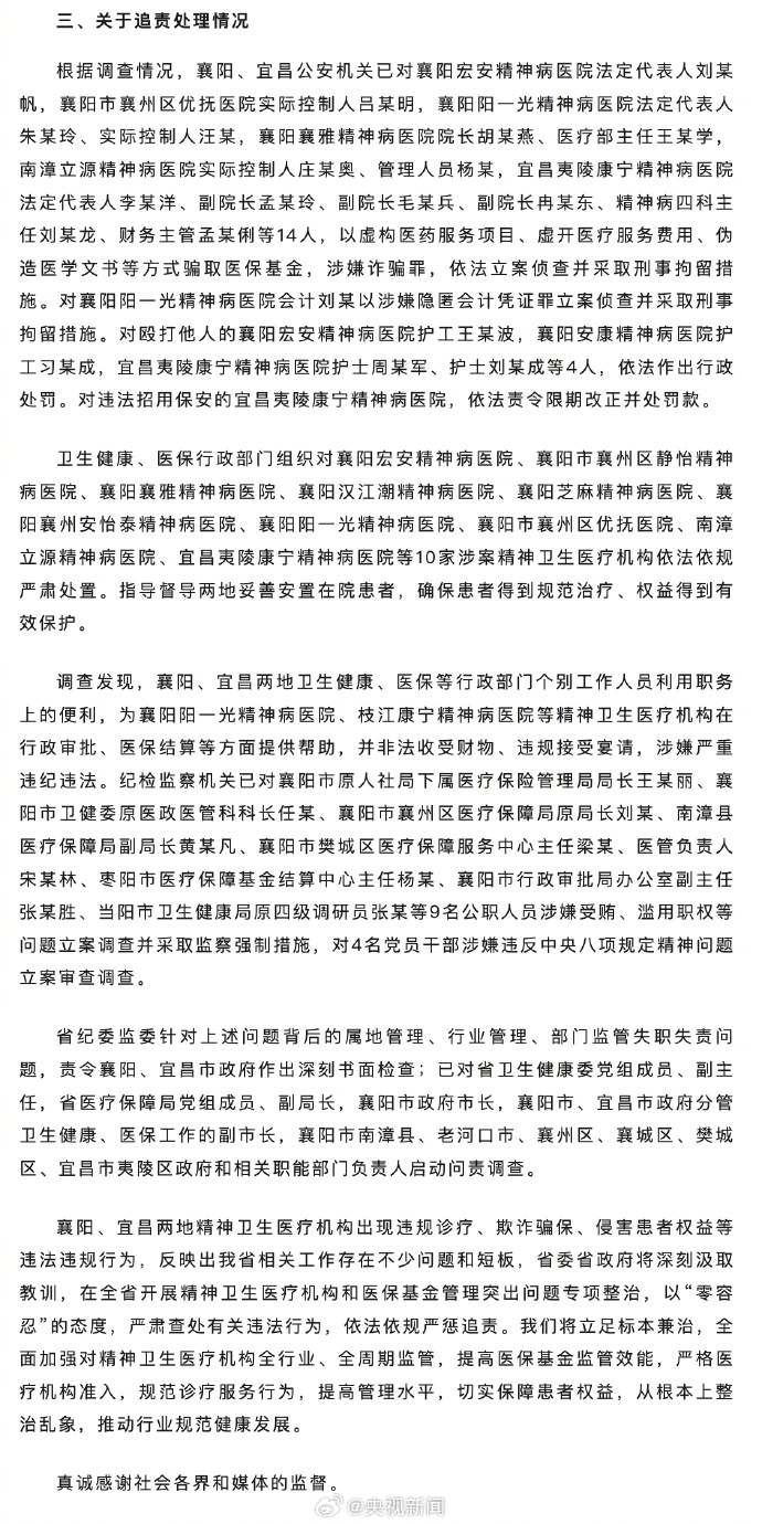 【#湖北部分精神病院问题最新通报#】#湖北部分精神病院问题追责情况# #襄阳宜昌精神卫生医疗机构有关问题通报#