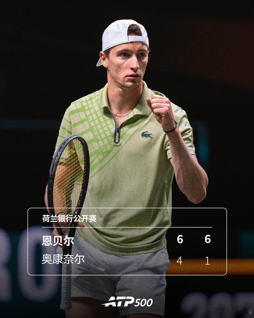 ATP500荷兰银行公开赛在鹿特丹展开四分之一决赛的较量,恩贝尔仅用时77分钟,就以6-4 6-1轻松击败资格赛球员奥康奈尔,率先拿到一个四强席位,也取得对后者的两连胜,他半决赛的对手将在德米纳尔和范德尚舒普之间产生。