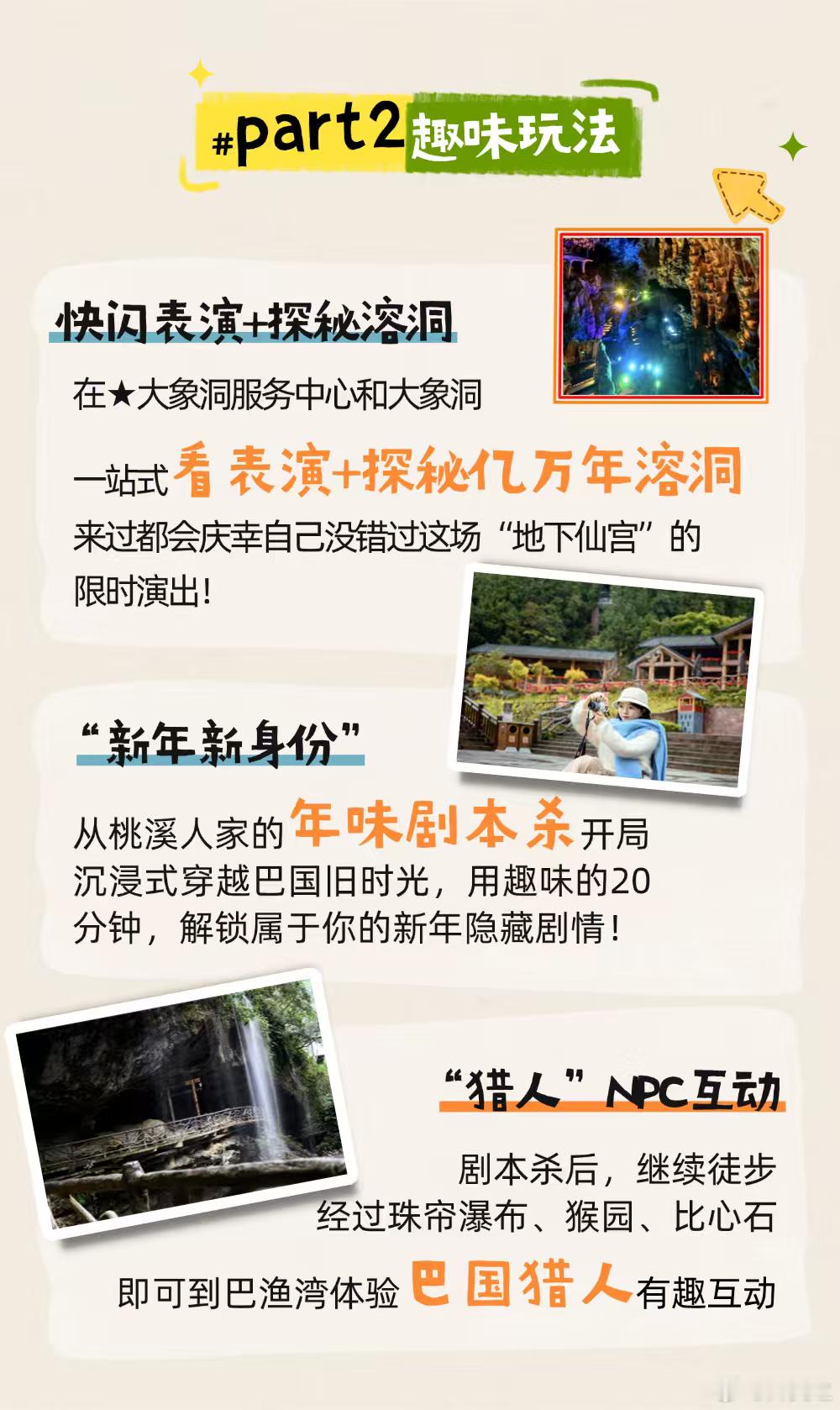 这个春节巴山大峡谷含金量百分百巴山大峡谷邀您来寻宝啦 藏在峡谷里的新春惊喜,落在山水间的马年好运!穿行在雄奇峡谷与清幽溪谷之间,徒步 9.6 公里醉美环线,触摸巴国古老文化,呼吸山林清新空气,不经意间就能邂逅这份专属幸运。年味藏在巴山的风里、水里、风景里,更藏在这份实打实的惊喜里