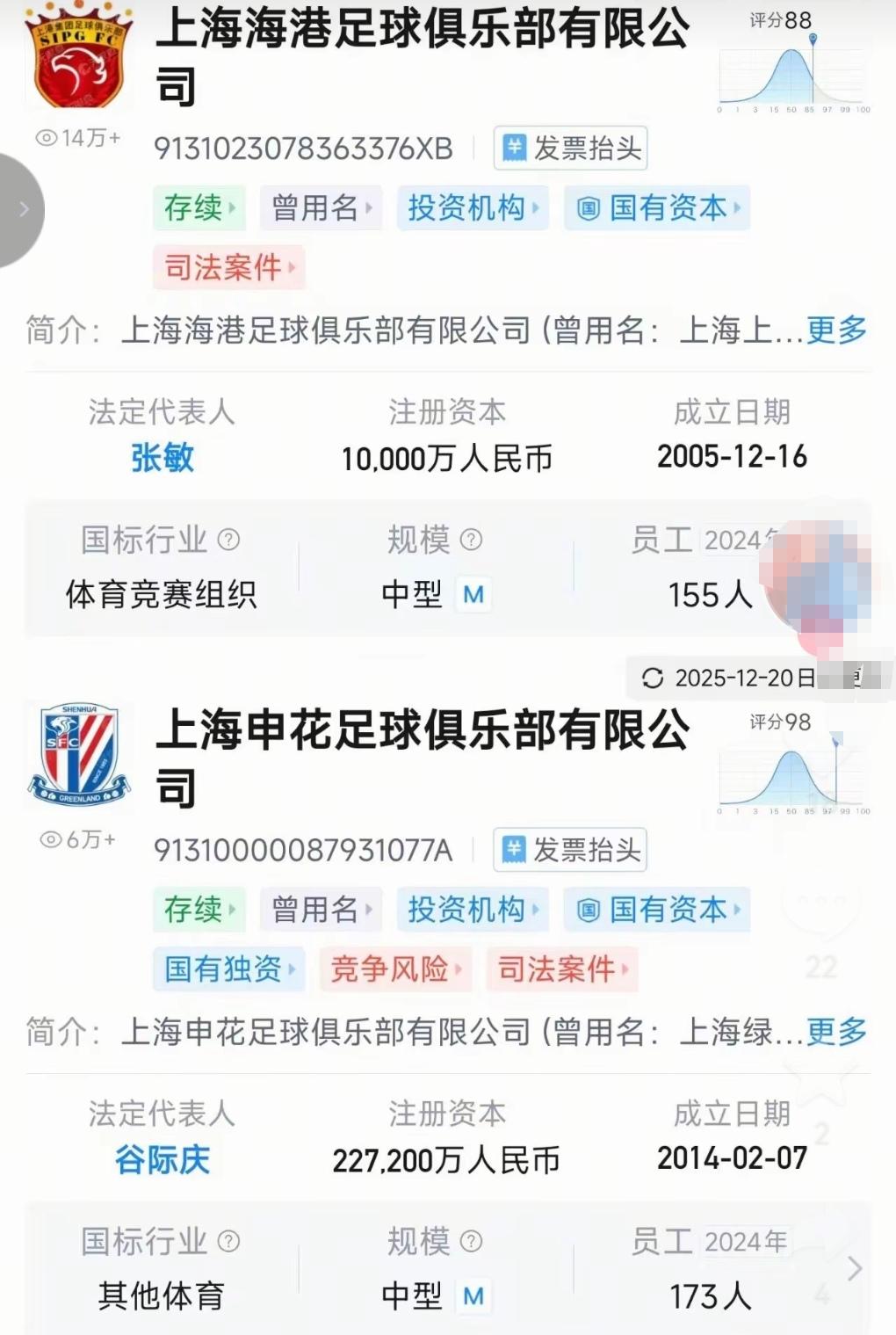 申花球迷感到有些迷糊了?按照这张表格海港底蕴要比申花深厚了!这是不是弄错了呢?我们看到申花成立日期是2014年,而海港是2005年!不是申花成立于1993年吗?不是30周年庆典也进行了吗?那为何是2014年成立呢?所以看到这张表格,申花球迷感到不理解!