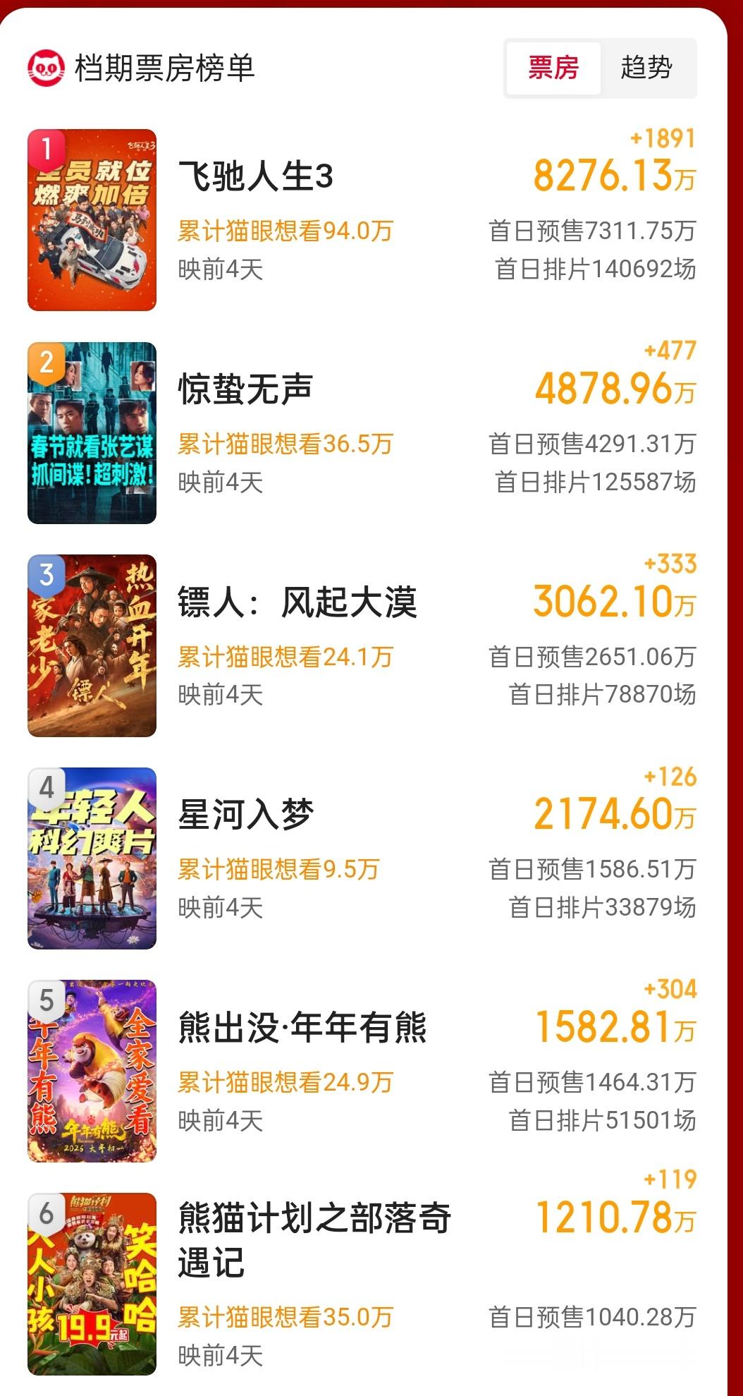 截止目前,春节档的票房预售,都挺冷的