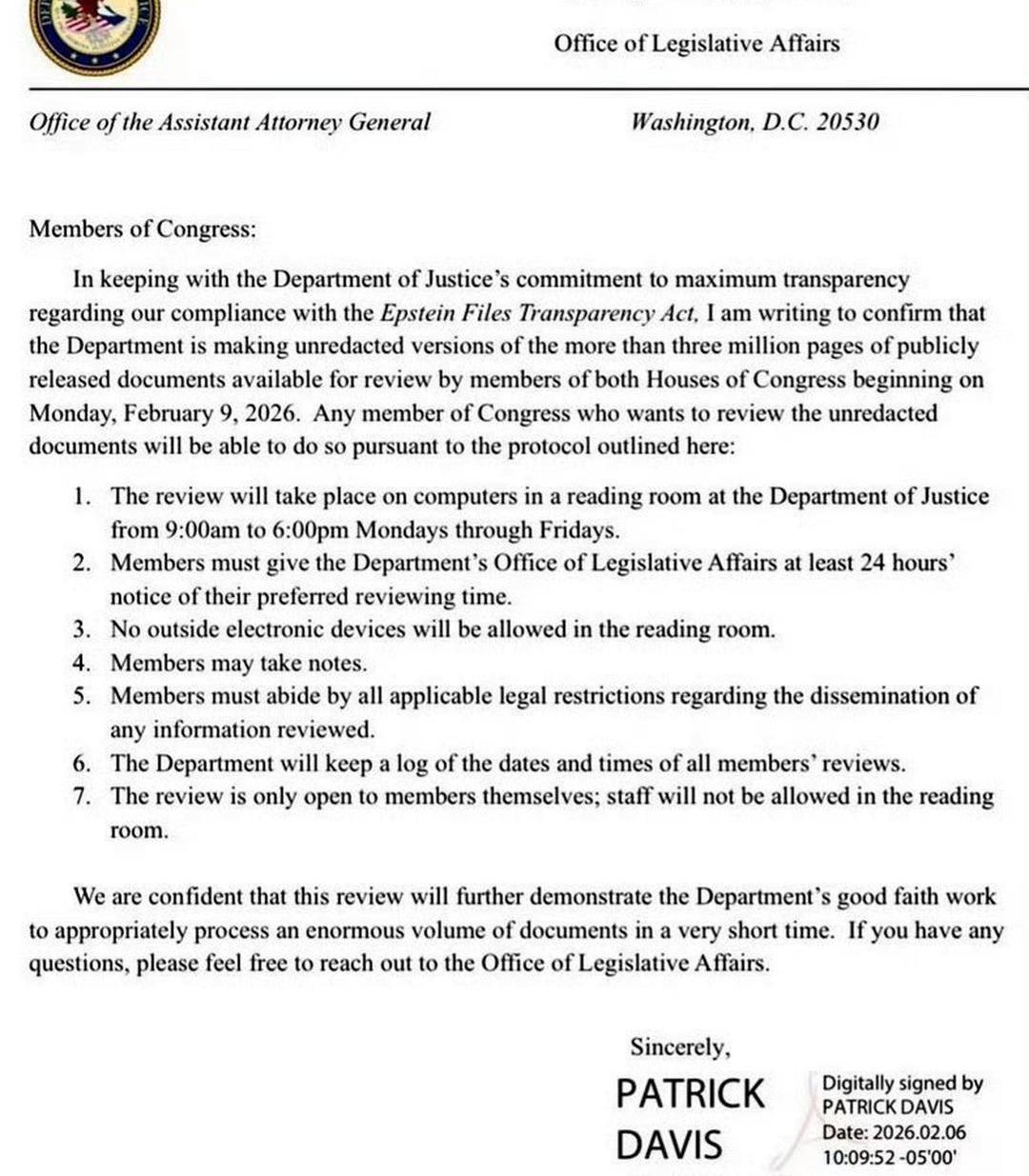 美国司法部发表声明称,从下周开始,美国国会议员可以在美国司法部电脑上查询已经公布的300万页爱泼斯坦档案无码版本,文件并非通过网站向公众开放查阅,而且有严格的限制性安排。 美国司法部已允许国会议员本人在司法部指定的办公室内,查阅超过300万页的未删减档案。但查阅条件极为苛刻:仅限议员本人进入,禁止携带电子设备,不得拍照或电子备份,只能依靠手写笔记。 这一安排旨在防止机密信息外泄,但也引发了关于信息透明度的争议。