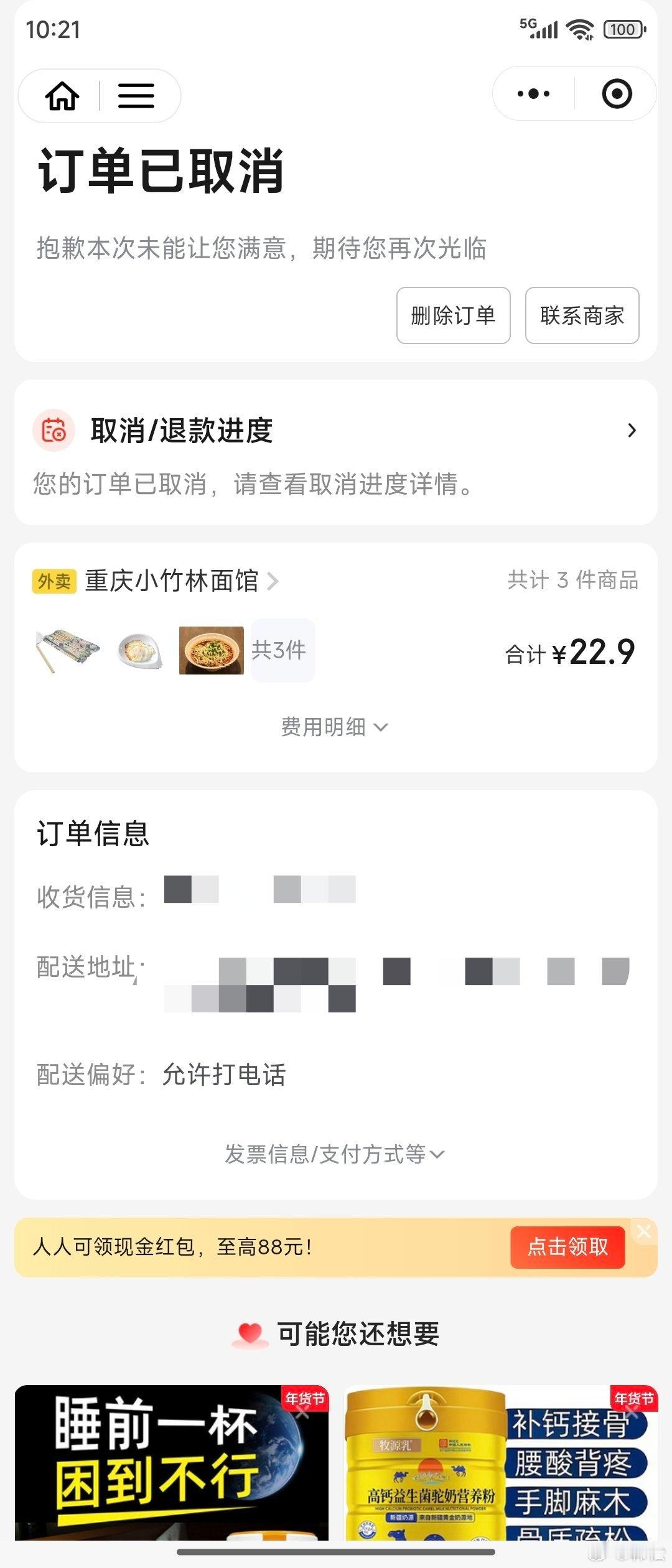 再点一个小面吃,刚付费,店家就打电话来,说下班了不做了,退款吧。然后灰溜溜吃了一个藕粉。