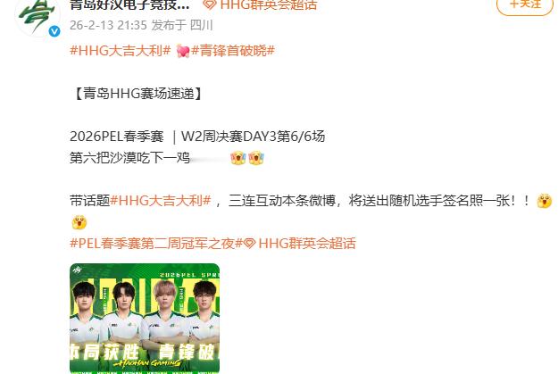 恭喜HHG大吉大利成功吃鸡!团战配合拉满,每一步都打得漂亮!HHG大吉大利