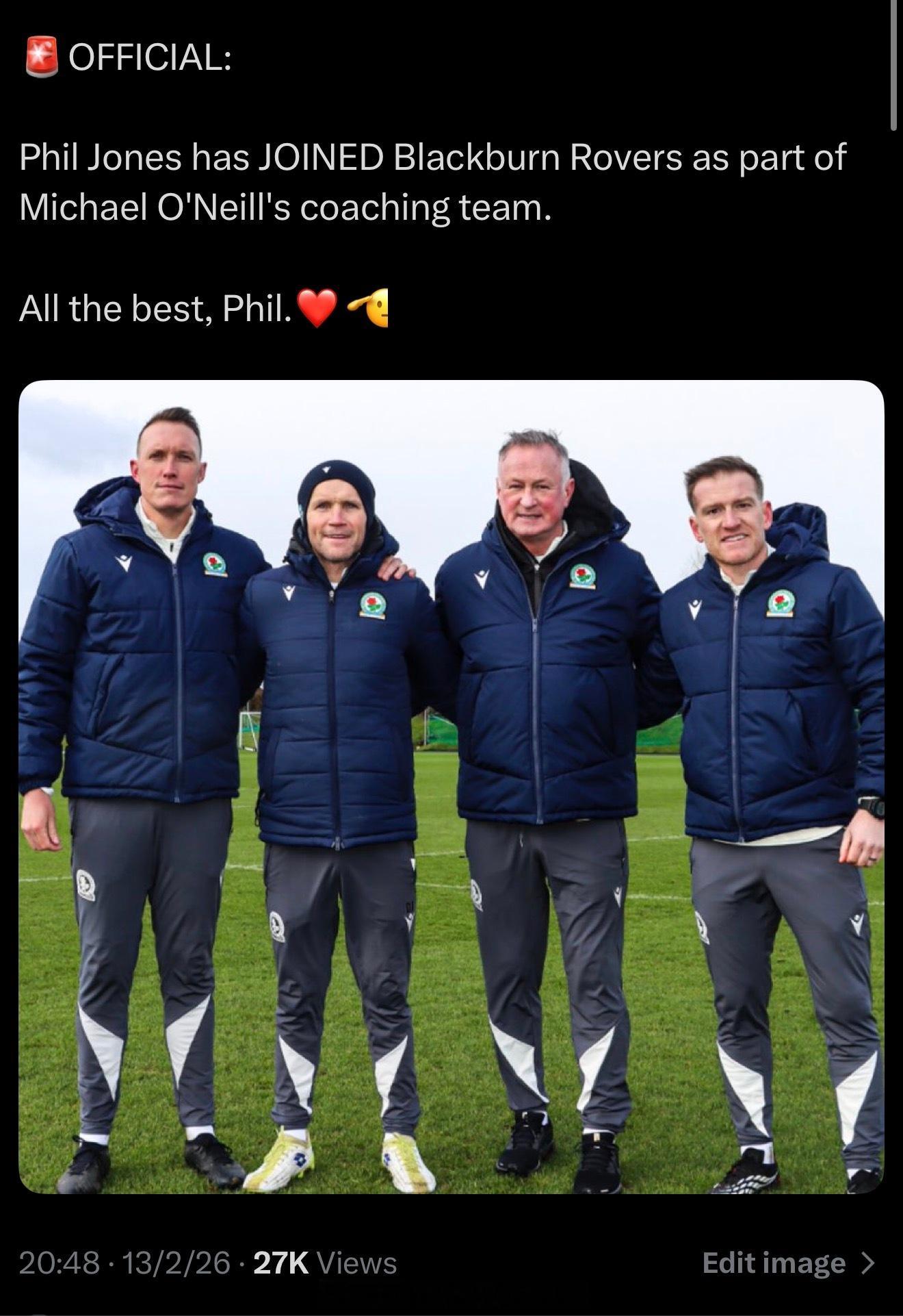 退役的琼斯新工作!正式加入布莱克本教练组暴力本啊哪天足总杯碰上?