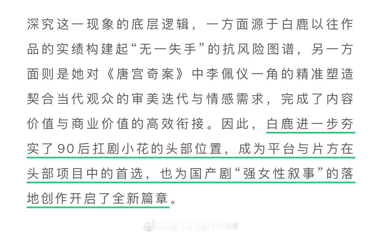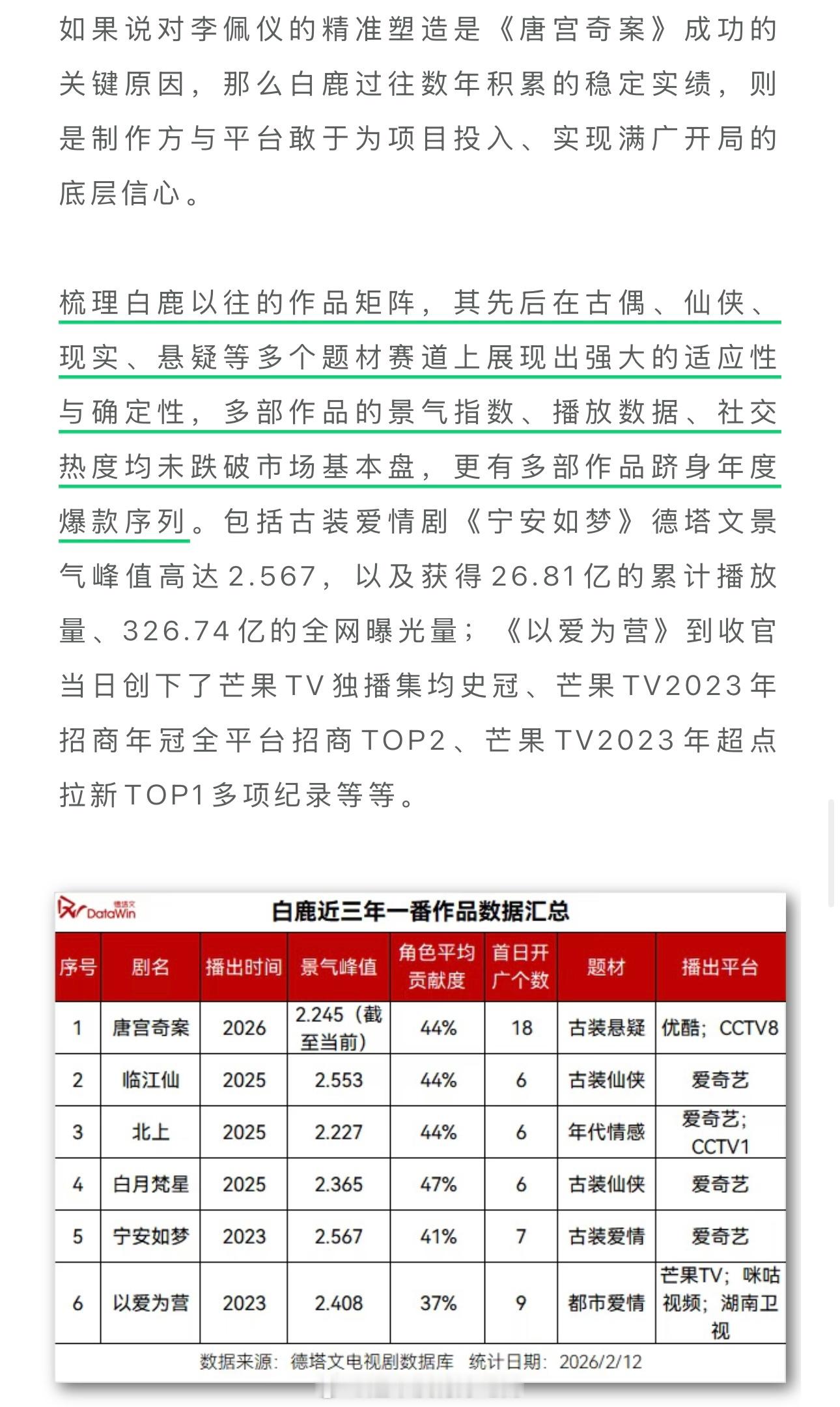 德塔文:从“扛剧花”到“收益压舱石”,白鹿《唐宫奇案》再度验证市场价值