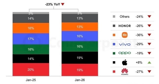 华为获1月中国手机销量第一二月基本也是第一跟苹果不相上下,你们信不信