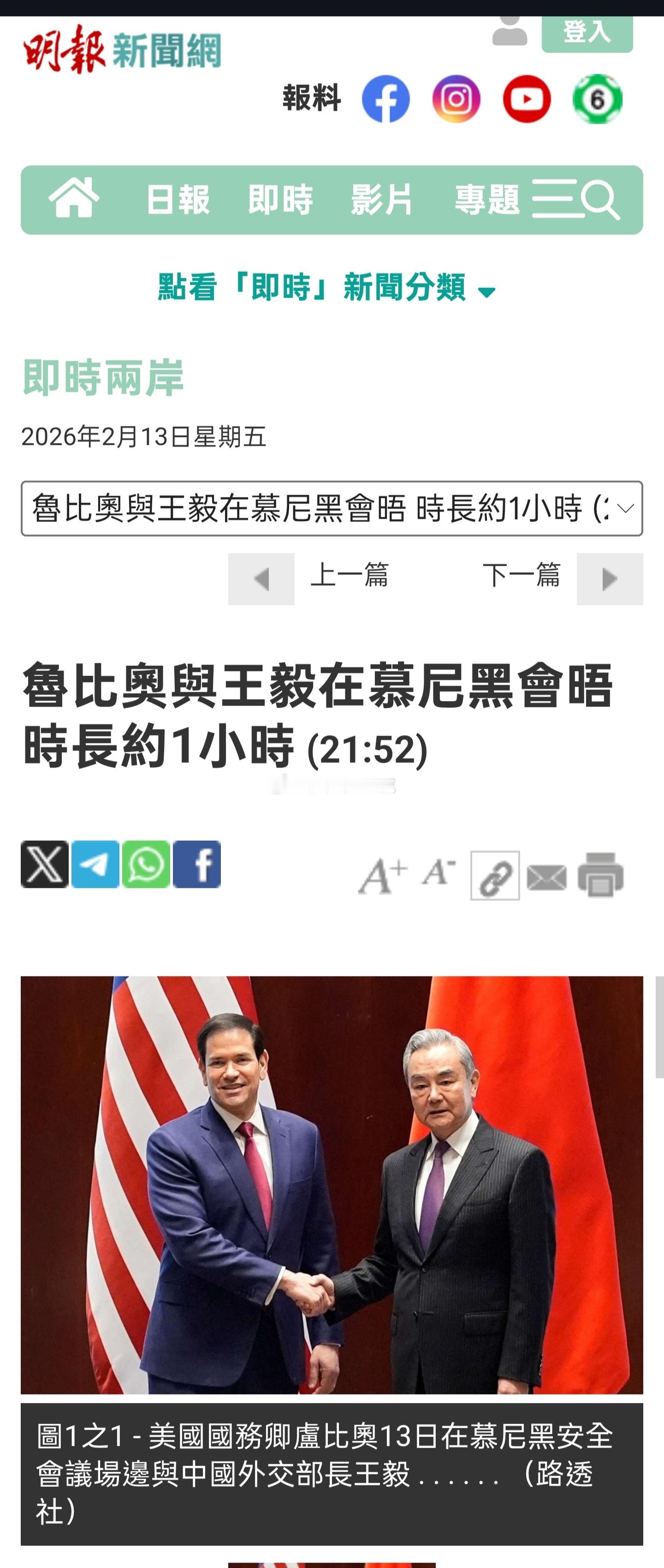 当地时间2月13日,中共中央政治局委员、外交部长王毅在慕尼黑会见美国国务卿鲁比奥
