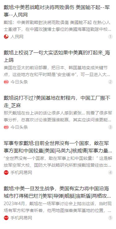 戴旭上校说了一句大实话,如果中美真的打起来,中国可能会吃点亏,但是美国也绝对好不到哪去。 事实上两国真的打起来,我们的沿海地区肯定会遭殃,因为这些沿海城市将是最先遭到攻击的。 但是我们也不会坐以待毙,不管是日本还是韩国的美国军事基地都会遭到我们的打击,而且不会给这几个国家留一点情面。 麻烦看官老爷们右上角点击一下“关注”,既方便您进行讨论和分享,又能给您带来更多优质的内容,感谢您的支持! 军事战略学者戴旭大校曾就中美军事冲突风险作出理性分析,核心观点清晰直白:两国若真爆发高强度对抗,没有任何一方能全身而退,都会承受难以承受的代价,这是基于地缘格局与军力布局的客观判断,并非危言耸听。 现代大国军事冲突,从来不是单一战场的胜负较量,而是全体系、全领域的消耗对抗。中美作为全球前两大经济体,一旦走向正面军事对抗,必然是相互重创的结局,这也是国际战略界多次兵推得出的共同结论,不存在单方面碾压的可能。 从地理与经济布局来看,中国沿海地区集中了全国主要的制造业集群、外贸港口、航运枢纽与核心产业链,是经济增长的核心引擎。这一区域人口密集、产业密集、基础设施密集,一旦遭遇打击,经济与民生都会面临直接冲击。 若冲突升级,沿海地区会率先面临军事压力,航运阻断、供应链中断、工业生产停摆等风险会集中显现,这是客观存在的安全短板,也是大国防御战略必须正视的现实问题,并非刻意夸大风险。 面对潜在威胁,中国绝不会被动承受损失,更不会坐视外部势力肆意挑衅。美国在亚太地区的军事部署高度依赖前沿基地,日本、韩国境内的美军基地是其远程打击、兵力投送、情报侦察的关键节点,深度嵌入美军作战体系。 这些基地既是美国威慑周边的支点,也是其脆弱的前沿软肋。一旦冲突突破红线,这些直接用于对华作战的军事设施,必然会成为反制打击的核心目标,以切断敌方前沿作战能力,捍卫本土安全与战略底线。 现代战争早已不是平面火力对抗,而是海、陆、空、天、网多维一体的体系作战。中国依托区域拒止与反介入能力,构建了覆盖第一岛链的精准打击体系,有能力对亚太范围内的美军前沿节点实施有效反制。 这种反制能力不是好战的表现,而是自保的底线,是防止冲突扩大、遏制军事冒险的必要威慑,目的是让对手清楚发动战争的高昂成本,不敢轻易跨越红线。 美国同样无法在冲突中独善其身,更不可能实现低成本远程作战。大规模军事对抗会带来巨额军费消耗,直接冲击美国本就高企的财政赤字与债务压力,国内经济、民生、就业都会受到连锁影响。 美军全球部署的格局会被牵制,亚太前线兵力补给、装备损耗、人员伤亡都会持续攀升,国内政治分歧、社会舆论压力也会随之放大,长期对抗会严重消耗美国的全球霸权根基与综合国力。 从战略层面看,大国之间的军事冲突没有胜利者,只有不同程度的受害者。戴旭大校的分析,本质是对战争成本的理性警示,而非鼓吹对抗,核心是提醒各方认清风险,避免滑向军事冲突。 中国始终坚持防御性国防政策,保持战略克制,坚持通过对话协商解决分歧,这不是软弱,而是基于大国责任与底线思维的理性选择。克制的背后,是完整的作战体系、充足的威慑能力与坚定的维权决心。 当前国际格局复杂多变,亚太地区局势敏感,军事手段从来不是解决分歧的最优选择,反而会引发不可控的连锁反应,波及地区稳定与全球经济秩序。中美合则两利、斗则俱伤,是被历史与现实反复验证的道理。 维护和平稳定,需要双方保持理性沟通,管控分歧风险,尊重彼此核心利益与重大关切。任何试图通过军事施压、阵营对抗解决问题的做法,最终都会搬起石头砸自己的脚,付出远超预期的代价。 中国的战略定力,源于对自身能力的自信、对和平的珍视,也源于对战争风险的清醒认知。我们不惹事,但绝不怕事,任何侵犯国家主权、安全、发展利益的行为,都会遭到坚决反制,付出应有的代价。 大国博弈的核心是实力与理性的平衡,一味逞强好胜、煽动对抗,只会把地区和世界拖入危险境地。正视冲突代价、坚守和平底线、坚持对话合作,才是符合中美两国与全人类共同利益的选择。