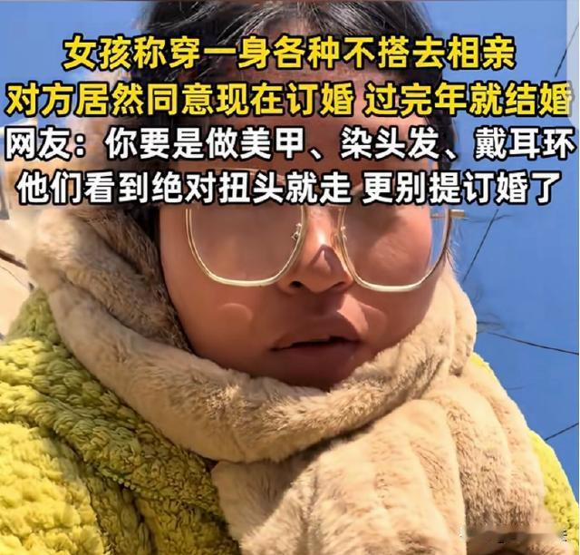 安徽,一女子家里催婚,这不年底了,家里更是催的紧,父母让媒人安排了个相亲对象,让女子去见一见。本来女子就排斥相亲,加上自己也长得不漂亮,到了约会当天,女子还直接给自己“扮丑”,自己照镜子都看不下去。女子心想,这下,应该能让相亲男恶心吧,不吓跑起码之后也不会纠缠自己吧。谁知道,一见面,男子直接说:我们马上就订婚吧,过完年就结婚! 本新闻参考来源:观象视频报道。 女子惊呼:“现在的男子,都找不到老婆吗?已经到了饥不择食的地步了吗?” 陈女士其实也老大不小了,这些年来,逢年过节,必然逃不过父母的常规操作——催婚。 但是由于自己社交圈子的缘故,根本就没有合适的青年能够处对象。陈女士,本来感情这个事情,根本就急不来啊。 这次放假回家,尽管陈女士不想去相亲,谁知道,还是被安排上了。 父母说:已经托媒人给安排了一位男子,希望陈女士可以去赴约。 对于陈女士来说,自己虽然不好看,但是打扮一下,也能看。就算是不能找到一个一见钟情的男子,但是起码是可以让自己怦然心动的吧。 面对父母的安排,陈女士内心其实就是排斥的。 然而,父母催的紧,自己也不敢反抗,只能硬着头去相一相。毕竟,自己要是敢说一句不去,父母就会说:“你看看你,都成剩女了,又不是大美女,你不去主动出击,没有人会主动来找你的!” 没辙,这一场约会,陈女士是非去不可了! 但是有什么办法可以把相亲男给劝退呢?女子心想,唯一的办法,就是扮丑。要知道,自己丑到一定境界的话,肯定能把对方给恶心跑路。 在陈女士的想法里,现在的男生,谁不喜欢漂亮的呢?娶个丑八怪回家,天天都要面对,没有哪个男的能接受吧。 于是陈女士翻箱倒柜的寻找,把最丑的一套衣服拿出来,穿好之后,头发也不扎,脸更加是素颜朝天。顺手再扎个围巾,这还是之前妈妈都不要的款式,总之,整个人的形象,陈女士自己是感到很不伦不类的。 之后,陈女士就按时赴约了。没有想到,对方男子不仅没有感到恶心,甚至还当场就跟陈女士敲定:“咱们订婚吧!” 没一会,相亲男还跟陈女士提出:“年前订婚,年后就结婚。” 听到这话,陈女士感到非常的懵圈,她甚至感觉,眼前这个男的,绝对是眼瞎了。 回家之后,陈女士拍了视频,把自己的装扮跟网友们分享,她表示怀疑:现在的男子,难道都是饿了吗?我这个样子的,也能看上? 网友们给陈女士的回复才搞笑:因为你普通,不化妆、不做头发、不买衣服,这一看就很省钱,之后他结婚更加花不了几个钱了! 再说了,女孩在经济上省钱,之后也是省了大把的彩礼钱啊。 本案释法: 女子不想结婚,但是父母一直催婚,为了不让父母失望,女子硬着头皮去相亲。如何看待现在年轻人不愿意结婚的现象?父母可以强行要求女子结婚吗? 根据《民典法》规定,结婚是每个人的自由,任何人不可以强制要求他人结婚。是否成立家庭,不在于是否辜负父母的期待,而是面对现实压力、价值觉醒,综合判断之后做出理性权衡。 很多年轻人不愿意结婚,是因为现实存在多重经济压力,另外,对于婚姻的价值也在被重新定义。 以前,结婚是“刚需”,很多女性依赖婚姻来获取经济保障喝地位,但是如今,女性有婚恋自由,加上婚姻并不是人生加分的必要品,她们更加希望婚恋对象值得投入时间、情感跟信任。 很多长相普通的男子,在相亲的时候,可能还真的不大看中对象长的怎么样,也不会挑选过于漂亮的,因为他们知道,长得漂亮的,还不一定能看上自己。 如果说看到对方长得不好看,甚至还有些丑,男子可能心理反而要开心一些,态度也会很积极,因为他感觉:我跟她很相配...... 或许就是这样的想法吧,毕竟在很单身汉眼中,能够有个对象,就不错了,还挑什么挑啊? 也有很多男网友表示:去找媳妇而已,又不是找花瓶,踏踏实实、朴朴素素的过日子就行了。 对此,大家都怎么看呢,欢迎一起来讨论吧!