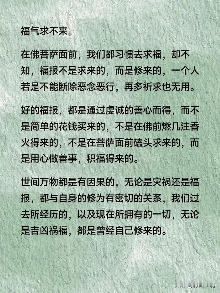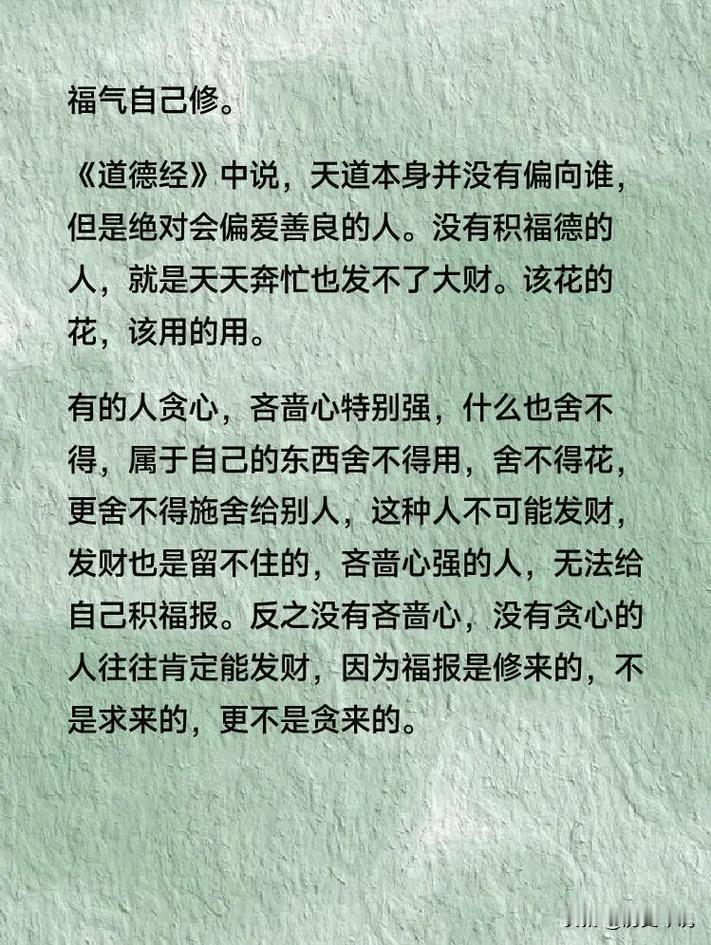 福报自来!老祖宗告诫:养好身上这三处风水,福气不请自到 编辑:纱娜 作者:纱娜 能刷到这篇文字的人,从来都不是偶然。 在传统民俗与处世智慧里,机缘与福报始终相伴相生。 能遇见这份道理,恰恰说明你的福气正在悄然汇聚。 老祖宗流传千年的话早已道破真相:“福人居福地,福地福人居”。 真正的好风水从不在外界的山水宅院中,也不靠求神拜佛得来。 它完完全全藏在我们自己的身上,藏在日常的修行与处世里。 创作声明:本文为基于史料的虚构创作或解读,部分细节为文学加工,请勿与现实绝对关联。本文所用素材源于历史记载或文献,部分图片非真实图像,仅用于叙事呈现,请知悉。 人身上的第一处核心风水,便是心术。 心术是为人的根本,心正則身正,心善則福至。 传统典籍中反复强调,存心仁厚才是积攒福报的第一要义。 心术歪斜的人,总想着算计他人、贪图小利。 即便能得到一时的好处,也会因失德耗光自身的气运。 这便是老辈人常说的,机关算尽,反而留不住半点福气。 心术养好了,待人真诚、做事坦荡,气运自然会顺。 不用刻意钻营,身边的机缘与善意都会主动向你靠拢。 这是刻在骨子里的风水,任谁都抢不走、偷不去。 人身上的第二处风水,是日常的言行。 言为心声,行为心表,一言一行都在塑造自身的气场。 口出善言、行做善事,就是在为自己积攒无形的福气。 恶语相向、行事刻薄的人,会慢慢斩断身边的人缘。 人缘散则气运弱,即便有好机会,也会因言行错失。 老祖宗劝人谨言慎行,从来都是为了护住自身的风水。 说话留三分余地,做事留一分厚道。 温和的言语、妥帖的举动,会让福气层层叠加。 这是最接地气的修行,也是最易得的福报。 人身上的第三处风水,是立身的品行。 品行是一个人最硬的底牌,也是家族福泽的根源。 历史上福泽绵长的世家,无一不是以品行传家。 品行不端的人,即便坐拥财富权势,也终究守不住。 德不配位,必有灾殃,这是千年不变的历史规律。 唯有品行端正,才能让福气扎根,让好运长久。 品行好的人,即便身处低谷,也能靠人品东山再起。 待人宽厚、坚守底线、知恩图报,都是养品行的关键。 这处风水养好了,富贵安稳都会不请自来。 很多人穷尽一生去寻风水宝地,去拜神求佛。 却偏偏忽略了,自己才是自身最好的风水。 向外求永远不如向内修,这是最通透的人生智慧。 心术正、言行善、品行端,这三处风水环环相扣。 养好它们,不用依附外物,不用攀附他人。 人生的路自然越走越宽,福气也会源源不断。 福报从来都不是凭空降临的惊喜,而是修行的结果。 你如何对待世界,世界便会如何回馈于你。 守住自身的风水,就是守住了一生的安稳与福气。 各位读者你们怎么看?欢迎在评论区分享你们的独特见解与想法讨论。