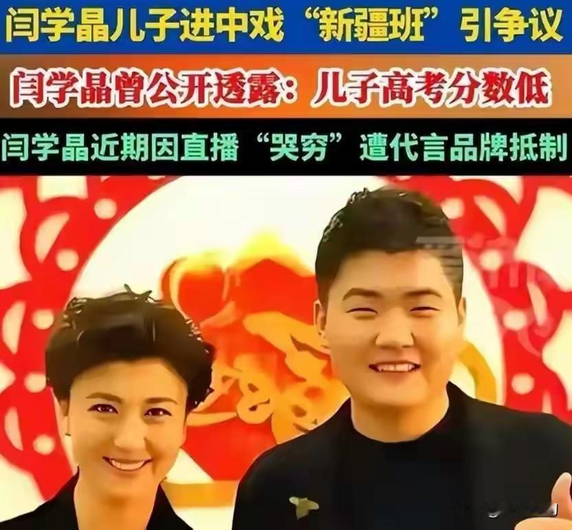 闫学晶翻车与凡尔赛哭穷…… 继李湘炫富全网账号被禁事件之后,闫学晶也因炫富兼偷税漏税3800万元逐步进入到了老百姓的视野,一月底一次性补缴了滞纳金和罚款共计1.2亿,这不是一般的有钱户啊!此前直播称其儿子年入几十万仍不够花、家庭年开支需百八十万,“哭穷”明显被打脸。 现在又被媒体扒出其儿子入学争议的事情来:被指其儿子林傲霜挤占中戏新疆班名额。在舆论方面其形象彻底崩塌,被指“忘本、失德、违法” 。 附)其现状: 账号:1月23日解封,但橱窗清空、广告全下、限流控评,粉丝从2000万+跌至1600万。 事业:所有代言解约、春晚和卫视节目被撤、影视资源下架、商业价值归零。