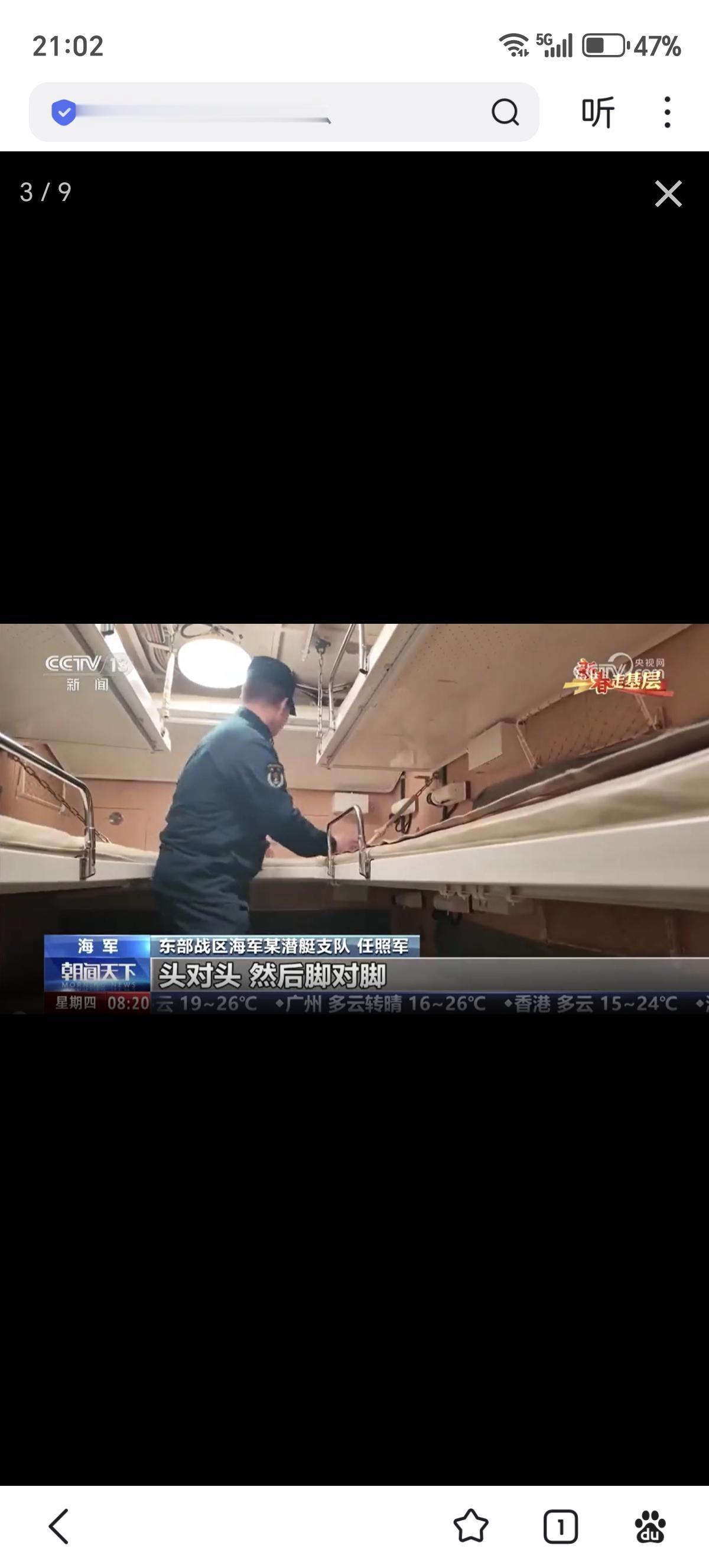 在中国人民解放军海军潜艇部队服役的俄制636M型“基洛”级大型柴电潜艇的水兵住舱:9人间,床位3x3布置,折叠床宽0.6米x长1.7米,床位在折叠后水兵可以在该舱室以坐姿就餐