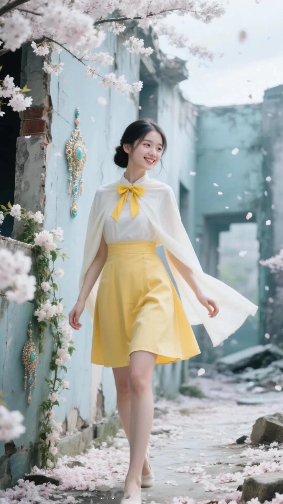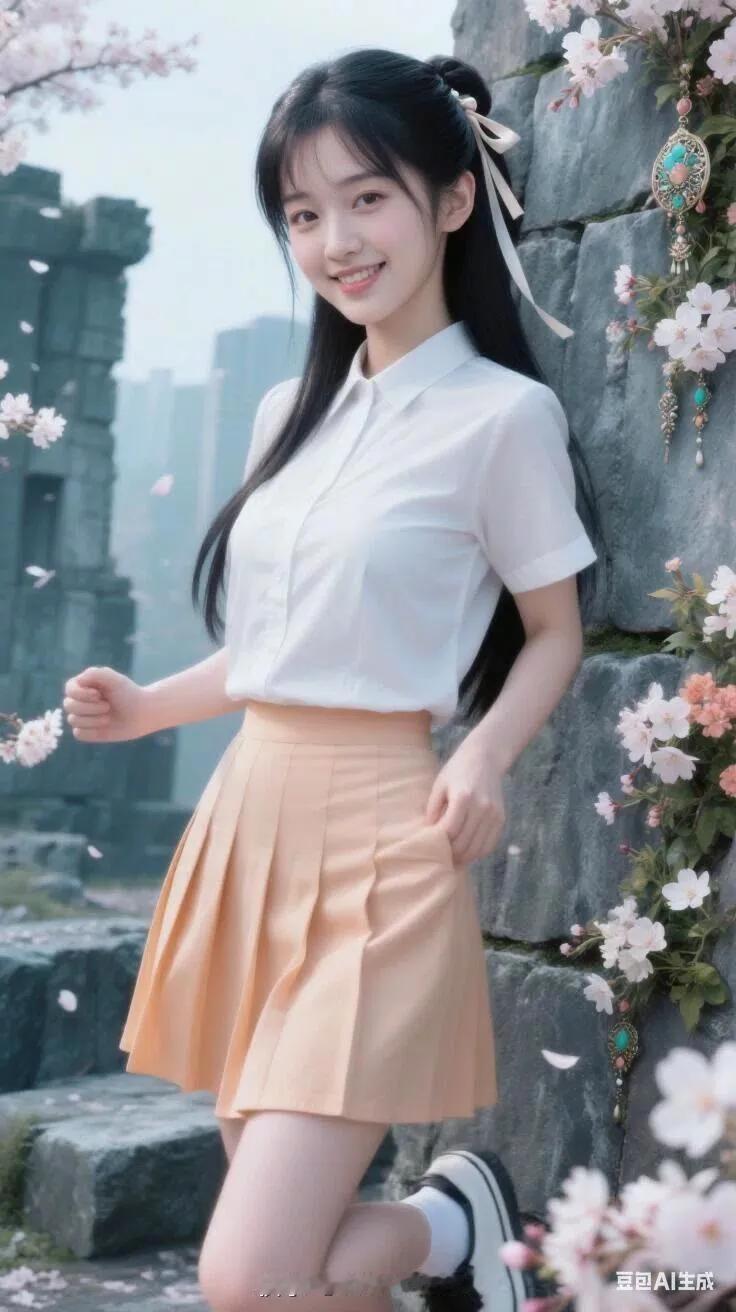 元气少女,蓝黄格子裙,微笑面对阳光☀️💕