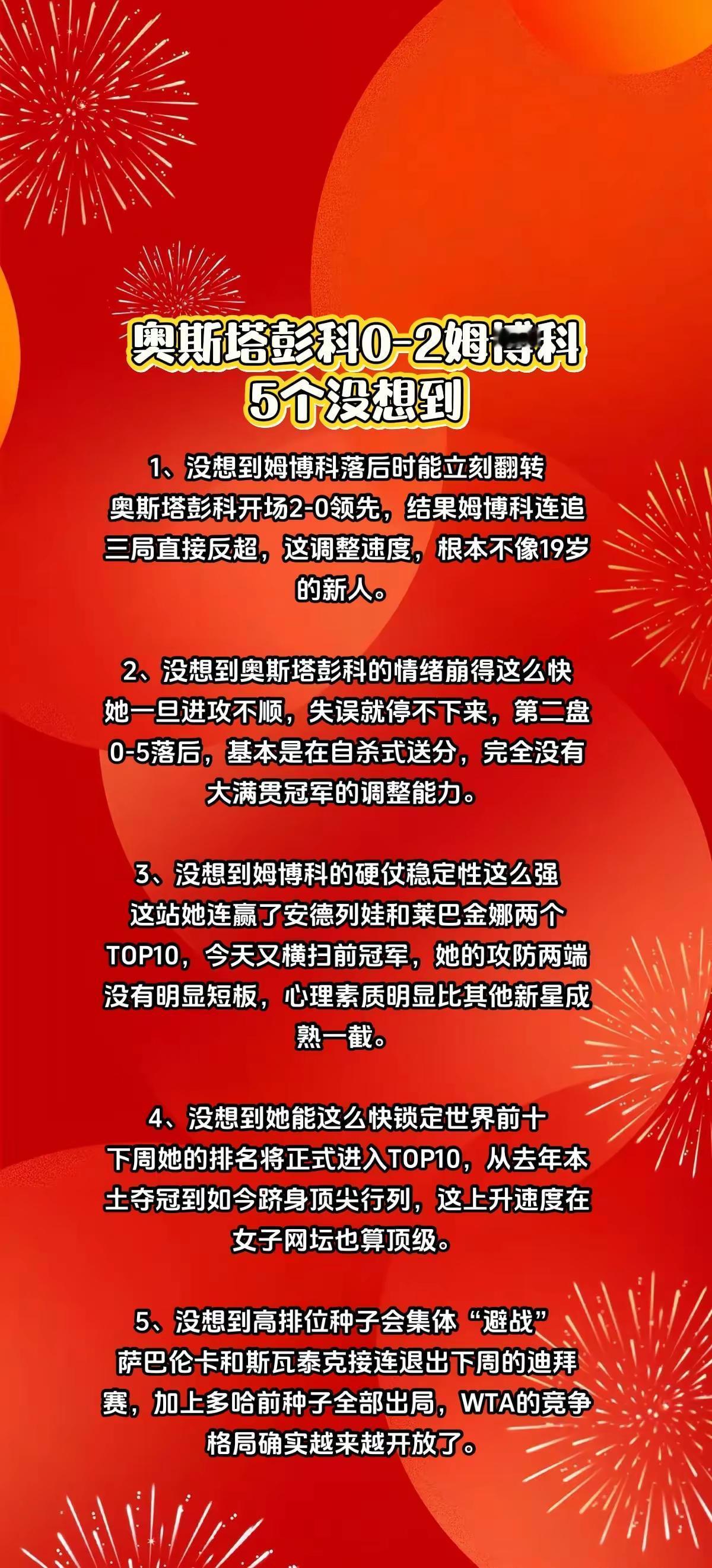 奥斯塔彭科0-2姆博科,5个没想到。精选