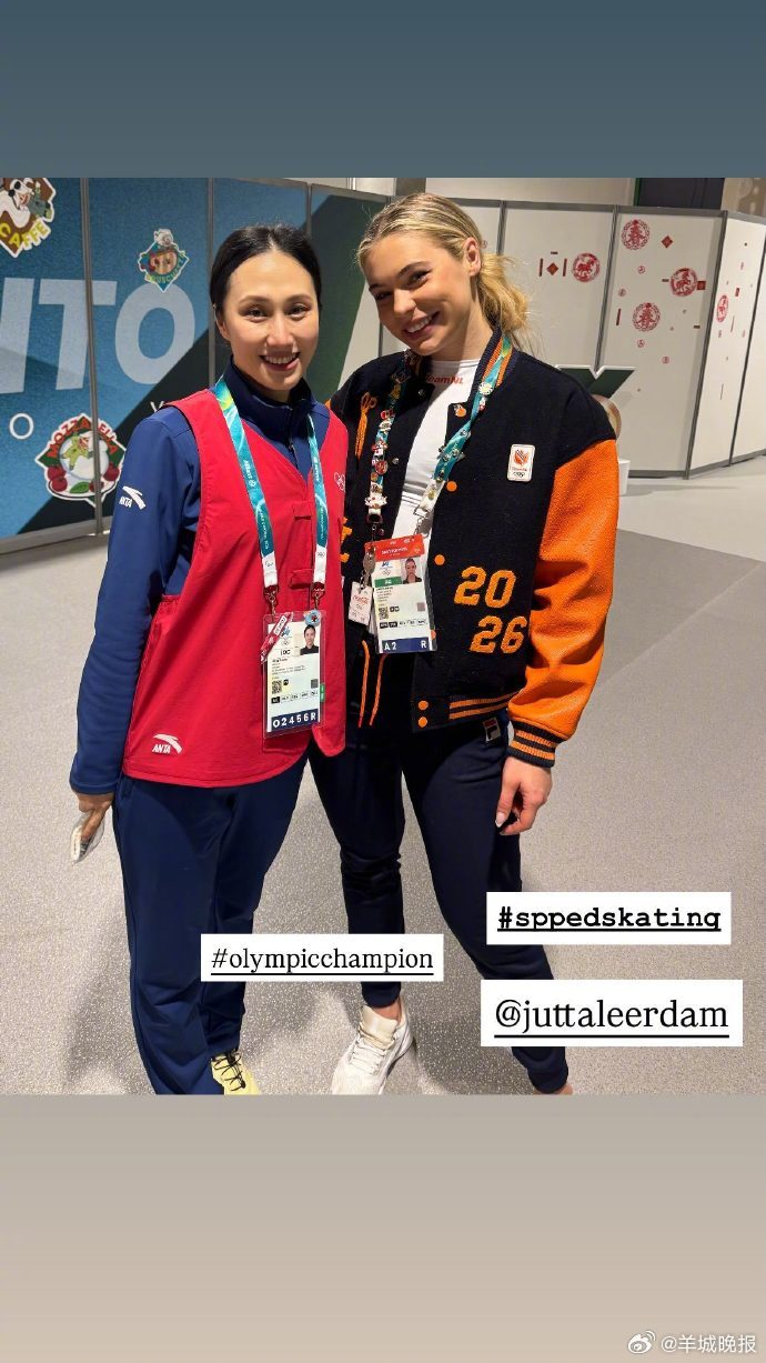【#张虹莱尔丹合照#】此前进行的米兰冬奥会速度滑冰女子1000米比赛,荷兰名将尤塔·莱尔丹1分12秒31刷新奥运纪录,夺得个人首枚冬奥金牌。国际奥委会委员、索契冬奥会冠军更新社媒晒出和莱尔丹的合照~2014年2月13日,张虹在索契以1分14秒02斩获速度滑冰女子1000米金牌,这也是中国速度滑冰的冬奥首金。#花滑米兰惨案##羽生结弦的含金量还在上升##马里宁自由滑重大失误##中国国家队致敬金博洋#(咪咕体育)(编辑:郑宗敏;审签:艾渝)