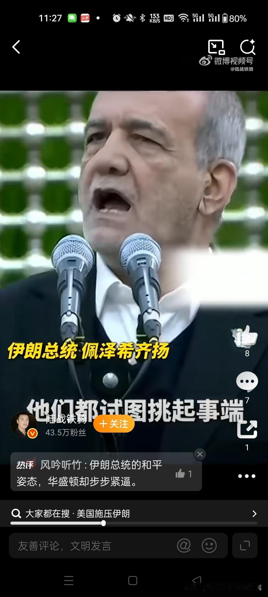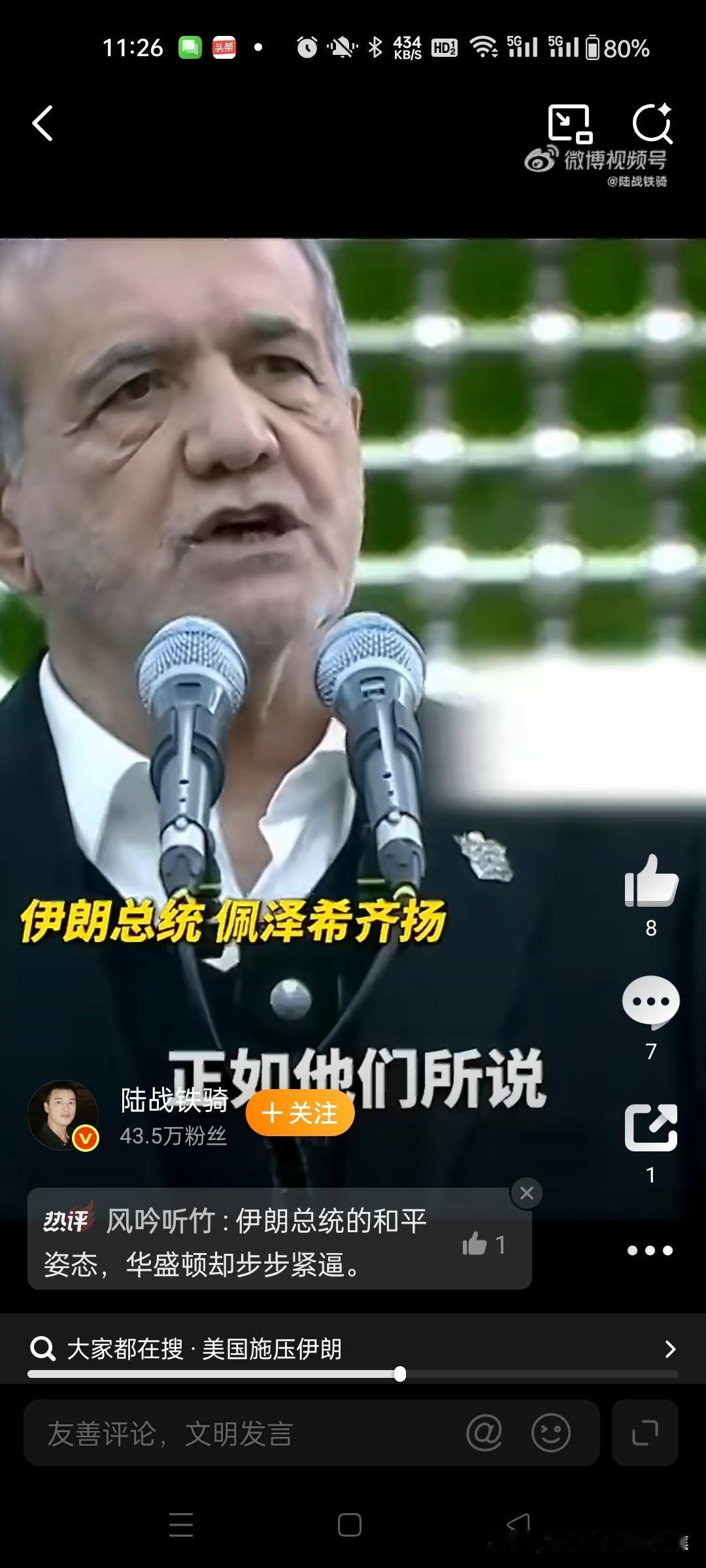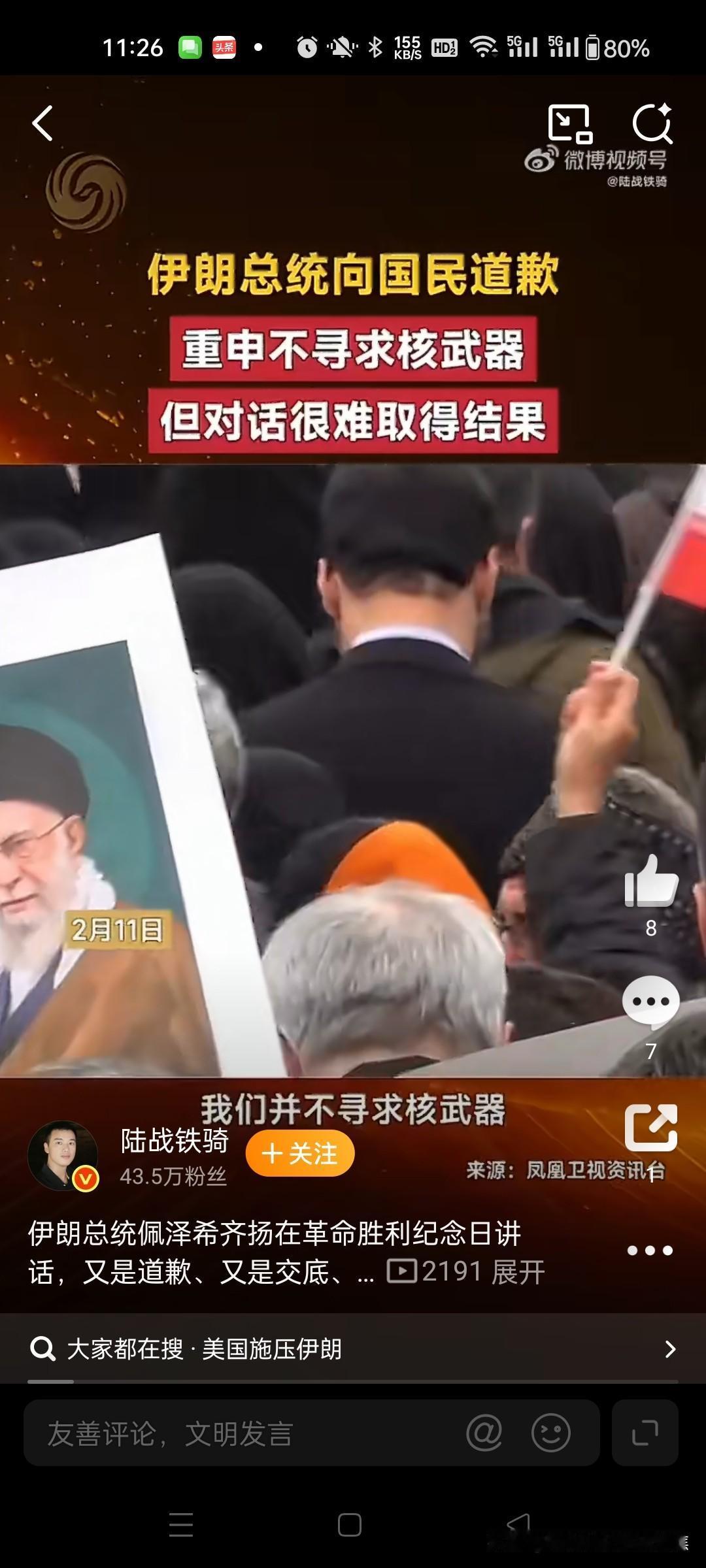 伊朗总统接受核查愿意谈判国内道歉但是在国内他说了不算。 伊朗总统佩泽希齐扬在伊斯兰革命胜利47周年纪念日(2026年2月11日)的讲话中,虽就国内民生问题向民众致歉并重申“愿接受任何形式核查”,但这一表态并非单方面妥协,而是多重压力下的战术调整;核谈判主导权实际受制于美伊结构性矛盾、国内政治分裂及以色列干预。314小彻说陆战铁骑 一、总统表态的双重意图:缓和压力与画红线 道歉与核查姿态的国内背景 佩泽希齐扬以政府负责人身份就经济恶化、民生困难向民众致歉,承诺全力解决问题。此举旨在平息2026年1月因货币贬值引发的全国骚乱,缓解因制裁导致的经济崩溃风险(里亚尔贬值70%、食品价格暴涨65%)。@小满 对国际社会的“透明化”策略 公开声明“不寻求核武器,接受任何核查”,试图回应西方质疑,但同步强调三大不可妥协原则:@经观APP32 和平核权利:拒绝放弃铀浓缩技术,坚称这是《不扩散核武器条约》赋予的合法权利; 反制外部干涉:指责美欧筑起“不信任之墙”,导致对话停滞; 主权底线:不会在“过度要求或不公侵犯前低头”。@环球时报大越楚卿环球时报 二、谈判主导权的多重制约因素 美国与以色列的“超额要价” 美方要求远超弃核本身,包括拆除离心机实现“零浓缩”、限制弹道导弹射程(≤500公里)、切断对地区代理武装的支持。以色列总理内塔尼亚胡更施压美国将导弹及代理人问题纳入谈判,否则威胁单独空袭伊朗。@凤凰卫视1427 伊朗内部权力撕裂 最高领袖与强硬派牵制:哈梅内伊的政治顾问沙姆哈尼明确表示“导弹能力不在谈判授权内”,革命卫队强硬派反对对美让步;@日照日报14 改革派处境艰难:总统佩泽希齐扬所属的温和派频遭国内强硬势力打压,其妥协空间有限。@叶建勛6 美伊互信彻底崩塌 伊朗外长阿拉格齐指出,2018年美国单方面退出伊核协议、2025年谈判期间美以空袭核设施(“午夜之锤行动”)等事件,使伊朗无法信任美方承诺。@CCTV国际...凤凰卫视干弟Nick在学英语日照日报石江月CCTV国际时讯 三、表态的实际效力:战术调整难解结构性矛盾 核查承诺的潜在限制 伊朗仅愿核查2025年空袭后重建的现存核设施,拒绝转移现有浓缩铀库存(约400公斤丰度60%铀),且以“解除制裁”作为核查前提。@北京时间 谈判僵局难破的根源 双方核心诉求完全冲突:伊朗要求全面解除制裁并保留铀浓缩能力,美国坚持“三位一体”压制(弃核+弃导+弃代理人)。即便达成临时协议(如伊朗小幅限制离心机数量换取部分制裁松动),也难实现全面突破。@一泓溪语君45 最可能结局:冲突风险持续累积 若美国拒解除制裁,伊朗或转向“核门槛策略”(保留技术但不武器化),而以色列军事冒险(40%概率空袭)及美伊擦枪走火(35%概率误判)将推高地区代理人战争风险。44北京时间一泓溪语君 四、关键结论 总统的道歉与核查表态本质是经济军事双重危机下的生存策略,旨在争取国际道义支持与谈判喘息期。但美伊主权与霸权诉求的根本对立、以色列的干预及国内权力掣肘,决定伊朗无法单方面主导谈判走向。当前局势如“悬崖边对话”,即便开启谈判,突破概率不足20%。@谷雨爹地3946