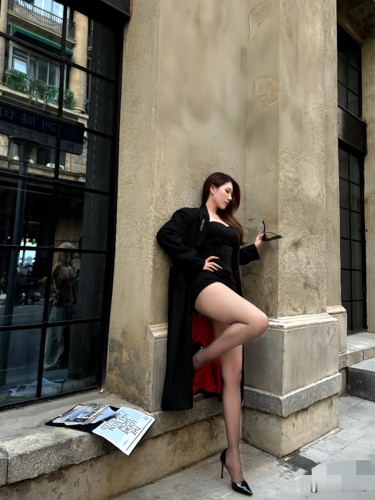 王楚然的黑丝穿搭太绝了!哑光质感勾勒出流畅腿线,性感不低俗,高级氛围感直接拉满