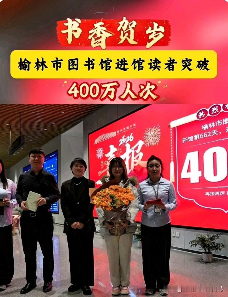 榆林图书馆太顶了!开馆662天,进馆读者直接破400万✨ 咱榆林人这读书热情直接拉满!2月12日榆林市图书馆迎重磅里程碑,开馆才662天,累计进馆读者就突破400万人次,这数据真的太亮眼了! 更有好运加持,来自甘肃的大二学生成了第400万个幸运读者,鲜花、春联、文创图书大礼包直接抱走,这波幸运值拉满~ 回看这一路,榆林图书馆简直开挂式成长:117天破百万、335天破两百万、478天破三百万,如今再攀新高,妥妥的榆林文化新地标,咱榆林人的精神粮仓实锤! 服务更是没话说,满意度常年98%+,榆图讲坛、绘本课各种活动超丰富,本地人爱来,外地游客也专程打卡~ 这400万不是冰冷的数字,是咱书香榆林的最好见证,新年逛图书馆已经成榆林新风尚,快来这座有温度的图书馆,沉浸式感受读书的快乐吧! 榆林博物馆 榆林市博物馆 图书馆测评 全国图书馆 榆林星元图书馆 榆阳区图书馆 靖边县图书馆