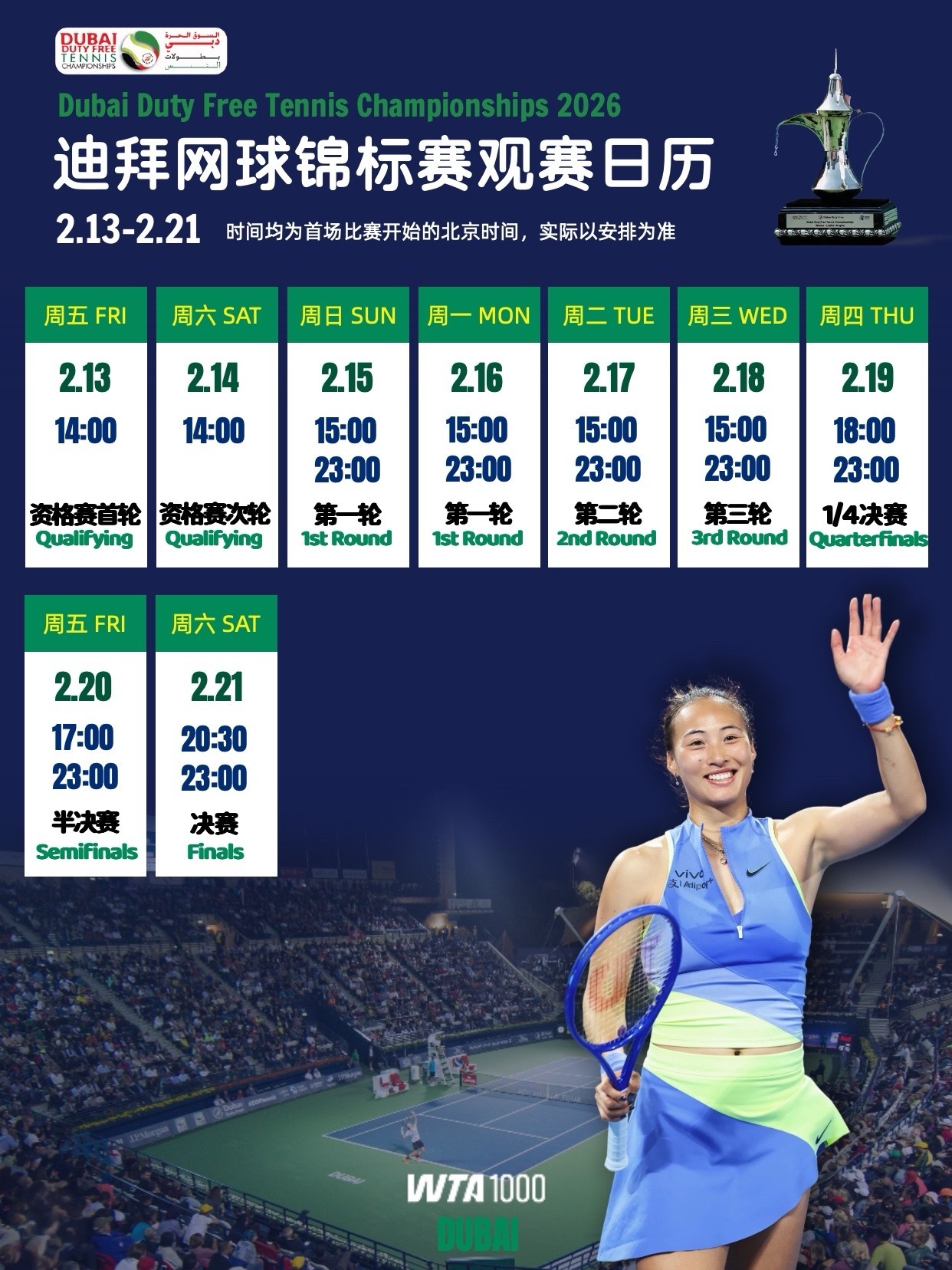 郑钦文迪拜再出发WTA1000迪拜 WTA1000迪拜锦标赛正赛将于2月15日开打,是全年第二站女子1000赛事,也是中东地区第2站1000赛。🗒️赛事信息资格赛时间:2.13-2.14正赛时间:2.15-2.21场地类型:室外硬地比赛地点:迪拜-🇦🇪阿联酋签位:单打56(前8首轮轮空)、双打28(前4首轮轮空)赛事总奖金:$4,088,211卫冕冠军:🇷🇺安德烈耶娃💰单打各轮次积分奖金:W:1000分,$665,000F:650分,$385,001SF:390分,$197,000QF:215分,$98,500R16:120分,$49,250R32:65分,$26,000R64:10分,$18,300单打正赛抽签将于今日17点进行,排名前44的将自动入围,8个名额从资格赛诞生,另设4张外卡,前8种子享受首轮轮空。郑钦文将出战本站赛事,在多哈复出首站收获16强成绩,表现已经非常值得肯定。期待钦文继续找回比赛状态,保持健康,在迪拜站收获更多!
