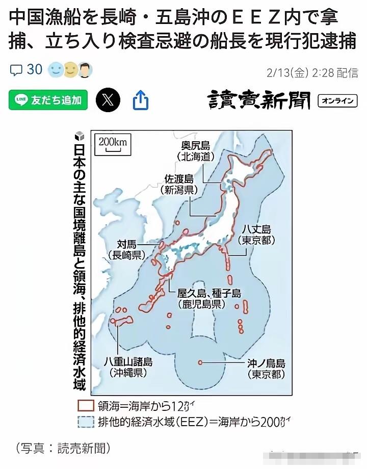 突发!高市终于动手了,日本扣押中国渔船,11人被抓 就在刚刚,根据日本共同社媒体报道,2月13日 日本水产厅在长崎县五岛市女岛灯塔西南方向170公里处扣押了一艘中国渔船,并逮捕了船长以及船上船员共计11人。 日本方面给出的理由是,中国渔船在日本长崎县外海的“专属经济区”内无视停船命令。驾船逃离现场,随后被捕。 首先得把话说透,东海这片海域的归属问题从来就没真正解决过,中日双方在专属经济区划分上一直存在根本分歧。按照《联合国海洋法公约》,专属经济区的划定本来就该由争议双方平等协商确定,任何国家都没资格单方面划线圈地。 中国一直主张按照大陆架自然延伸原则来划分,这是有充分法律依据的,因为东海大陆架本来就是中国领土的自然延伸,直到冲绳海槽才是界限。 可日本偏要搞什么“中间线”原则,完全无视地理事实,说白了就是想靠着单方面主张,把自家的海域线往中国这边推,抢占海洋资源和渔业空间。 这次扣押渔船的地方,就在长崎县外海170公里处,这片海域本来就是中日主张的专属经济区重叠区域,属于有争议的“暂定措施水域”,日本凭什么单方面宣布是自己的地盘,还动辄扣押中国渔船、逮捕船员? 这就像两家院子的界线还没谈拢,邻居就拿着自己画的线说你越界了,直接闯进你家把人抓走,天下哪有这种道理? 更让人无法接受的是,日本这次的行为完全违背了《中日渔业协定》的约定。 早在1997年,中日就签署了渔业协定,明确在这种争议重叠区内设立“暂定措施水域”,双方都不实施各自的渔业法令,而是由各自执法机关管理本国渔船,这就是“船旗国主义”的默契。 而且协定里还写得明明白白,就算有纠纷,被扣的渔船和船员在提供担保后也该“迅速释放”。 可日本这次怎么做的?出动了“白鸥丸”“那之津”等4艘执法船,围着一艘中国渔船围追堵截,就因为渔船没配合他们的单方面检查,就强行扣押,还逮捕了船长。 从扣船到中方表态,都超过24小时了,日本连担保释放的机制都没启动,更没提领事探视的事,这根本就是把双边协定当废纸,完全不履行自己的法定义务。 日本这次选择在这个时候动手,显然不是偶然,背后藏着明显的政治算计。就在不久前,中国驻日大使吴江浩刚指出中日关系面临邦交正常化以来最严峻的局面,责任全在日方,而日本右翼代表人物高市早苗赢得众议院选举后,日本的对华政策越来越强硬。 这次扣押中国渔船,说白了就是日本右翼势力在对内迎合强硬派民意,对外试探中国的底线,想通过制造渔业纠纷,加剧地区紧张局势,为自己的政治野心服务。 他们把渔业问题政治化,完全不顾及两国渔民的切身利益,也不顾及中日关系的大局,这种危险的试探,只会让两国关系进一步恶化,最终损害的是双方的利益。 还要看清的是,日本的这种做法完全不符合国际法准则。《联合国海洋法公约》明确规定,沿海国在专属经济区执法时,应该保持最低限度的克制,不能随便监禁船员。 可日本上来就逮捕船长,还启动所谓的“调查”,明显超出了合理执法的范围,属于滥用执法权。 而且他们单方面划定的“专属经济区”,没有任何国际法上的效力,中国从来就没承认过,日本拿着自己的国内法《渔业主权法》,去管辖有争议海域的中国渔船,这本身就是对国际法的公然违背,是典型的“国内法凌驾于国际法”的霸权逻辑。 中国政府的回应虽然克制,但态度非常明确,外交部发言人已经要求日方严格遵守《中日渔业协定》,公正执法,保障中方船员的安全和合法权益。 这不仅是在维护中国渔民的切身利益,也是在捍卫国际法和双边协议的严肃性。 我们坚决反对日本这种单方面的挑衅行为,更不允许日本把争议海域当成自己的“后花园”,肆意妄为。 渔民们冒着风浪出海捕鱼,图的就是养家糊口,他们的合法权益必须得到保障,日本必须立即释放被扣的渔船和船员,停止这种毫无道理的挑衅。 说到底,东海渔业纠纷的根源,还是在于海域划界争议没有解决,但这绝不能成为日本单方面执法、扣押中国渔船的理由。 在划界问题解决之前,双方本该严格遵守《中日渔业协定》,通过协商沟通处理分歧,而不是动辄使用强制手段,加剧矛盾。 日本这种把渔业问题政治化、动辄挑衅的做法,只会让双方的互信越来越少,让东海局势越来越紧张。 我们希望日本能认清形势,摒弃霸权思维,回到对话协商的轨道上来,尊重中国的领土主权和海洋权益,尊重中国渔民的合法作业权利,否则只会搬起石头砸自己的脚,给中日关系带来更多负面影响。