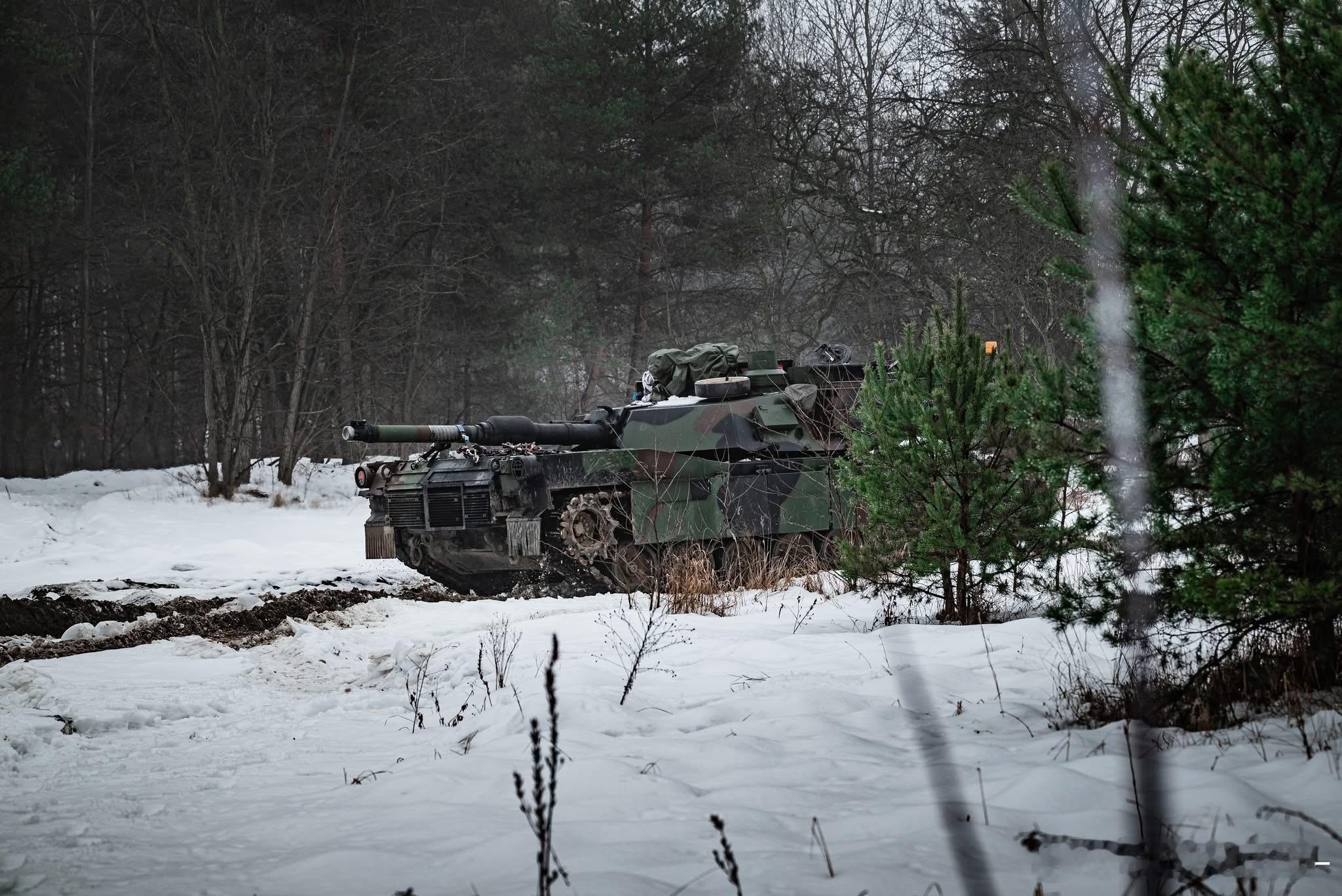 隶属第一骑兵师第9骑兵团的艾布拉姆斯进行雪地训练,摄于2月份的爱沙尼亚坦克装甲车