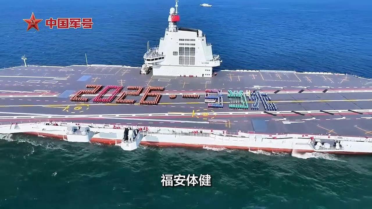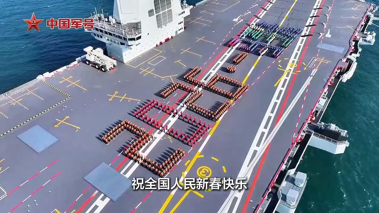 福建舰官兵于2026年2月14日农历新春期间,在甲板列队向全国人民拜年,以“一马当先”“万马奔腾”等祝福语送上硬核新年问候。 官兵们摆出醒目造型或标语,展现昂扬士气,传递守护深蓝的坚定信念。 此次拜年活动被广泛视为中国海军自信展示的一部分,与辽宁舰、山东舰等共同构成“重器天团”拜年阵容。