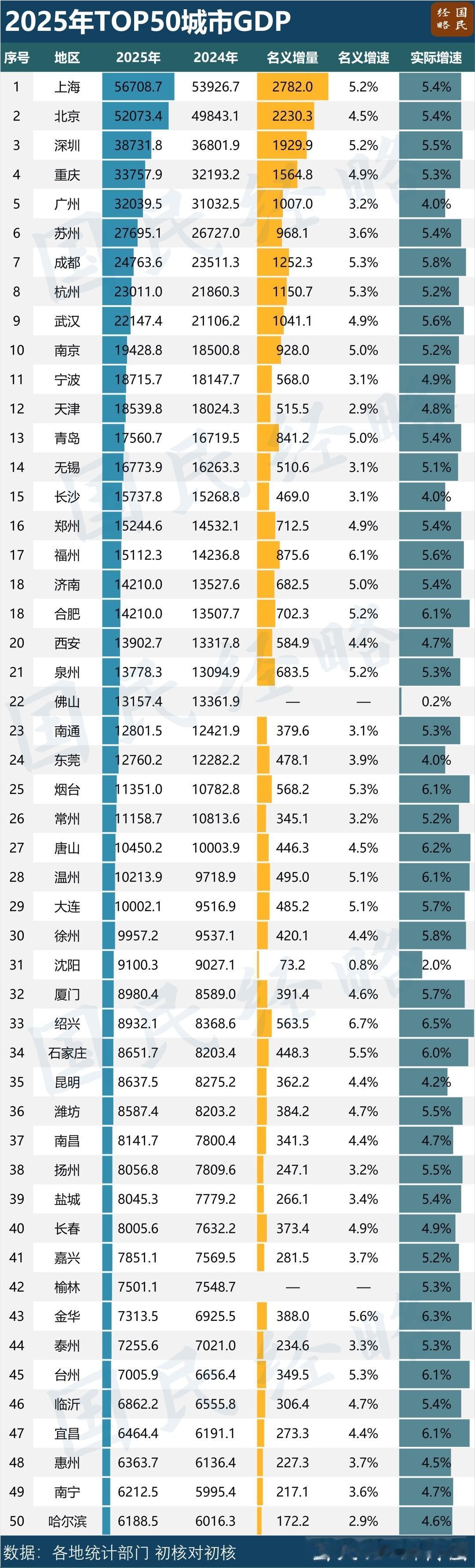 2025 GDP TOP 50,看看有你的城市吗?