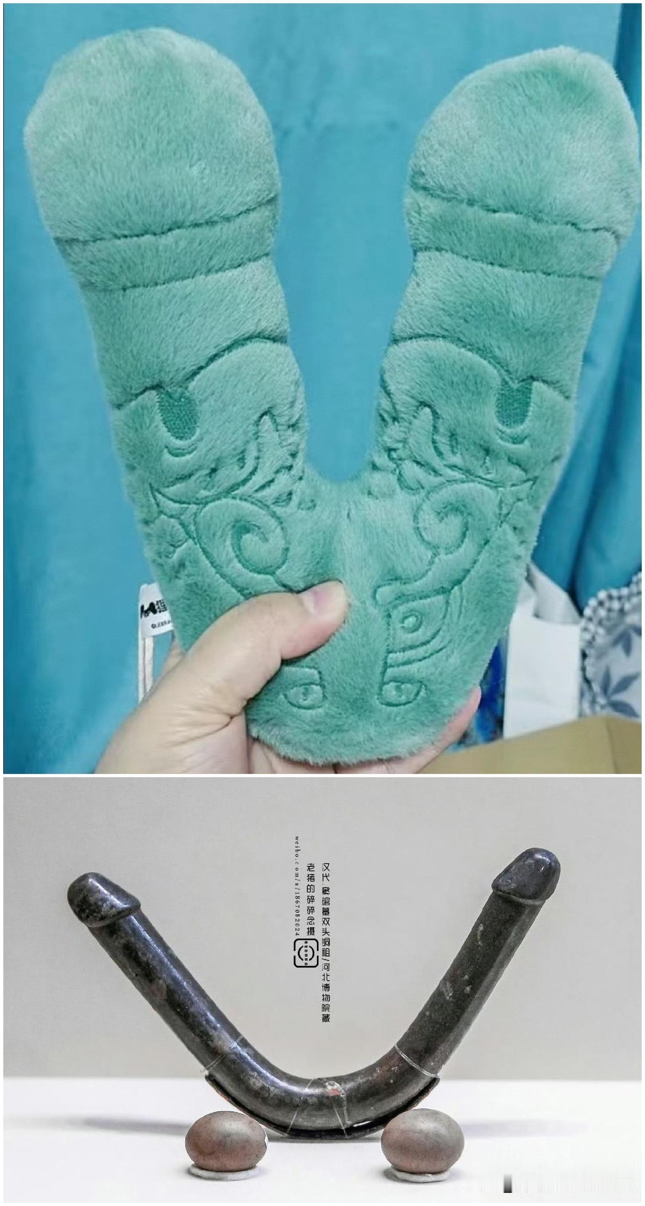 [捂脸] 啊?这是哪家文创的逆天产品啊?原型是在西汉中山靖王墓中出土的“双头铜祖”,据专家研判,这个“铜祖”不是“冥器”,而是“实用器”…… [捂脸] 这个文创毛绒玩具看来还是下了一番功夫的,仿的惟妙惟肖,细节都在……逆天啊