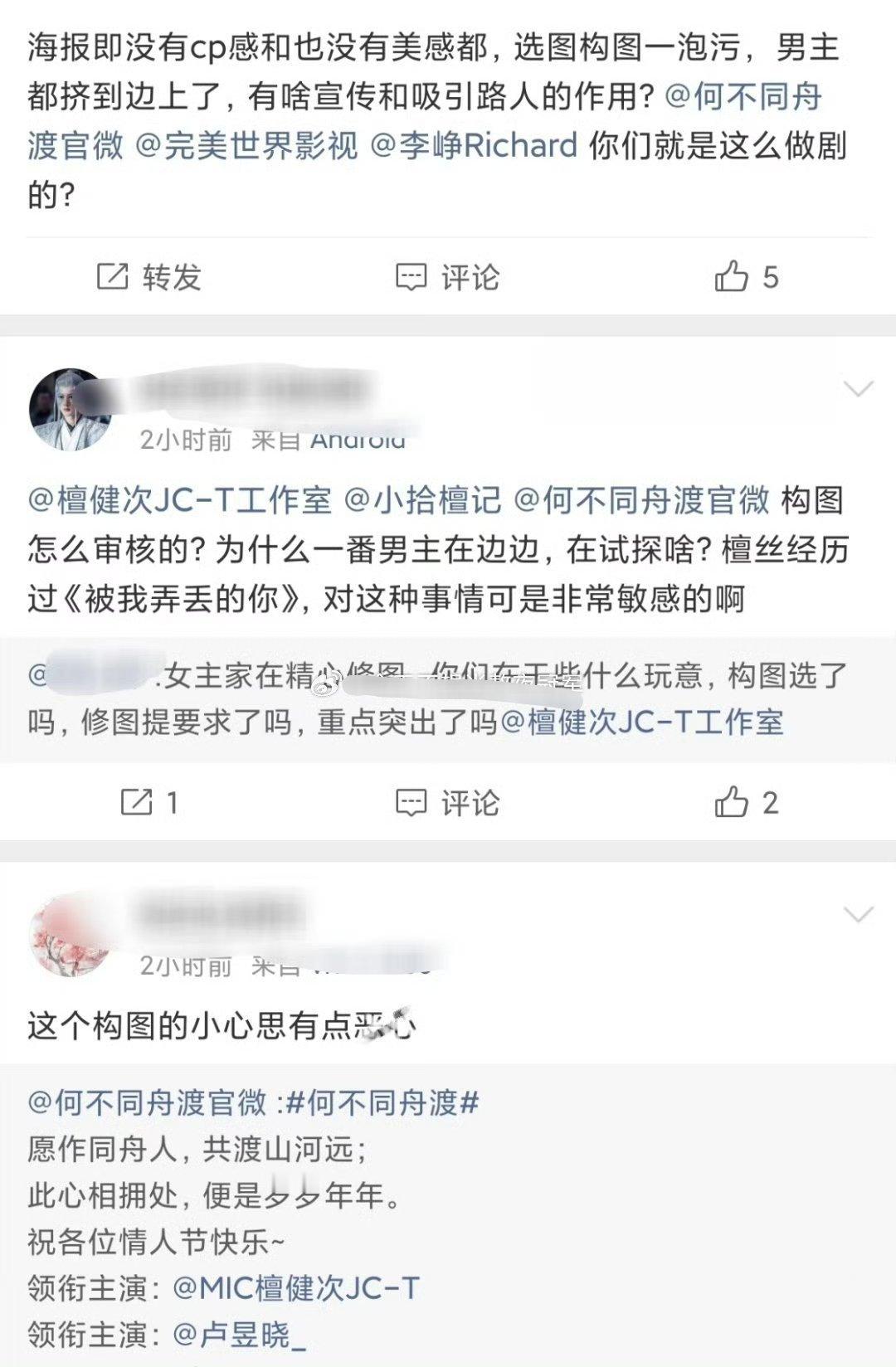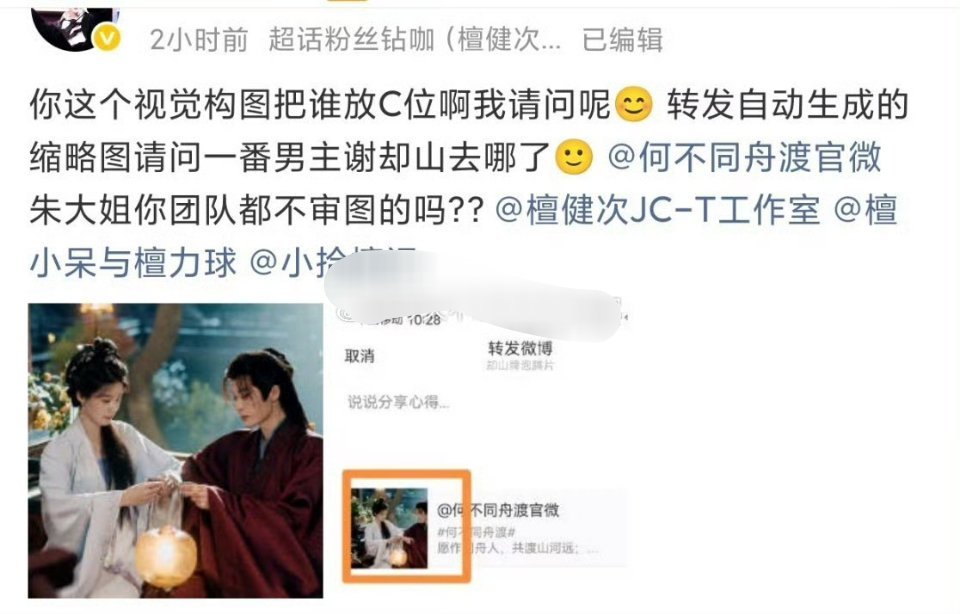 檀健次粉丝在维权今天的海报构图,觉得女主占了c位