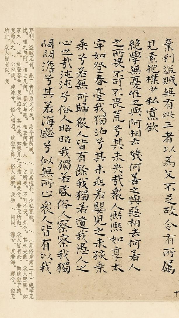 一位被严重低估的“书法圣手”!看他抄写的《道德经》,400年无人能敌 千百年的发展,令书法界诞生诸多的名人能将,除了类似王羲之、颜真卿这种,处于尖端的晋唐巨匠,其他各朝各代的民间,或者隐士高手,常被后人遗忘和低估,特别是明清书法,被严重忽视。 虽然彼时推崇“馆阁体”“台阁体”,用笔普遍规整、拘束,但是仍有一部分书家,坚持师古,水平高妙,譬如石涛,便是其中之一,此人跟八大山人的身世,颇为相似,俗姓朱,名若极,明代皇室后裔、靖江王朱亨嘉之子。 当年清人入关后,身为皇室后裔的石涛,被重点关注,为了打消清人顾虑,保全自身,他跟八大山人一样,上山剃发为僧,法号原济,别号大涤子、苦瓜和尚等,乃是明末清初“四僧”之一。 作为宗室之后,石涛自幼得到良好的教导,宫廷内书画真迹,也时常赏析,眼界高深,领会纯正的古人风韵,出家之后,还四处游历,以贩卖书画为生,阅历和技艺更是大大提升。 石涛直入魏晋,坚持以古法为尊,尤得钟繇浑穆、古朴之风,启功曾说:“原济法出魏晋,得其天然,熠熠不俗,上自米癫,下至董(其昌)、王(铎),脱俗无过其右者。” 他的笔法最得魏晋天然之美,米芾至王铎,明朝乃至现代的400多年,无人能匹敌,比如我们欣赏《小楷道德经》,字字醇和,极具魏晋风韵,此帖是石涛字数最多、笔法最成熟的一幅作品。 他一生多次抄写《道德经》,目前唯有这一幅真迹存世,总长度达7.6米,共计5000余字,单字约为1厘米,笔画圆融遒和、流逸畅达,既有楷书的端庄,还兼备隶书的遒和古雅,格调丰富,质感高级。 此作曾被多位名家珍藏、鉴跋,翁方纲在题跋中写道:“乙卯正月十七日。于鱼山寓斋观石涛和尚写竹二竿。竿仅濶二寸许。而一笔自下直上。真有月落空庭千万丈之势。方纲记”,这段话证明此帖的真实性。 而今,我们对石涛《小楷道德经》,进行1:1超高清复刻,采用博物馆级别,12色微喷复刻工艺,与原作毫无二致,此品乃是手工经折装,装裱精细,便于翻折和临摹。 全卷加入现代字注释,帮助初学者识读,字体十分高清,市面罕见,独此一家,比普通印刷品更加还原、细腻,所有细节处理,全都一览无余,见此品如见原作,若您喜欢可点击下方商品链接一观。 石涛小楷道德经册 台博藏带注释高清原大微喷复刻手工经折装