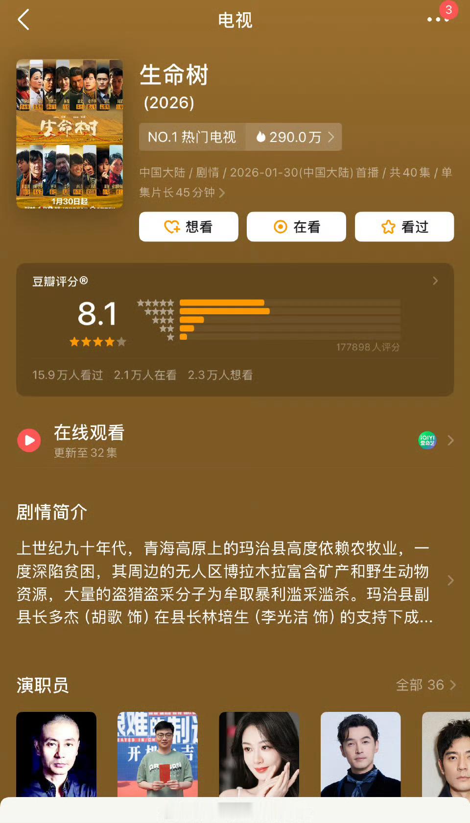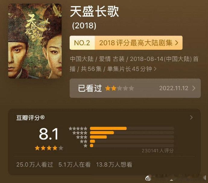 生命树和风起陇西、太平年、天盛长歌豆瓣评分一模一样诶! 想要吹口碑的扑gai剧专用分吗?