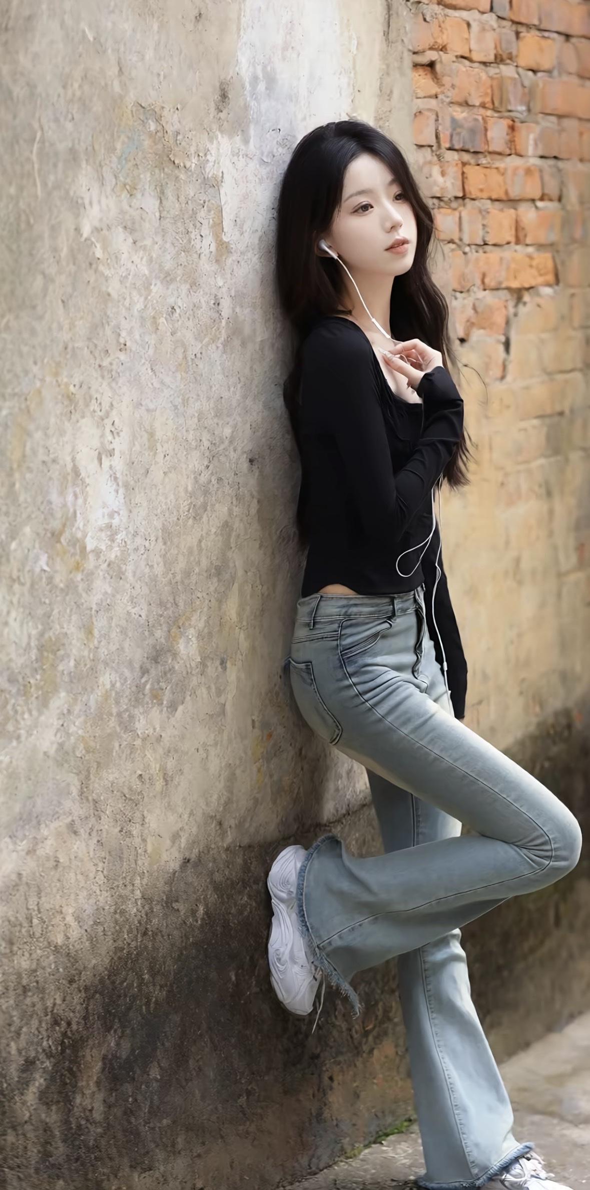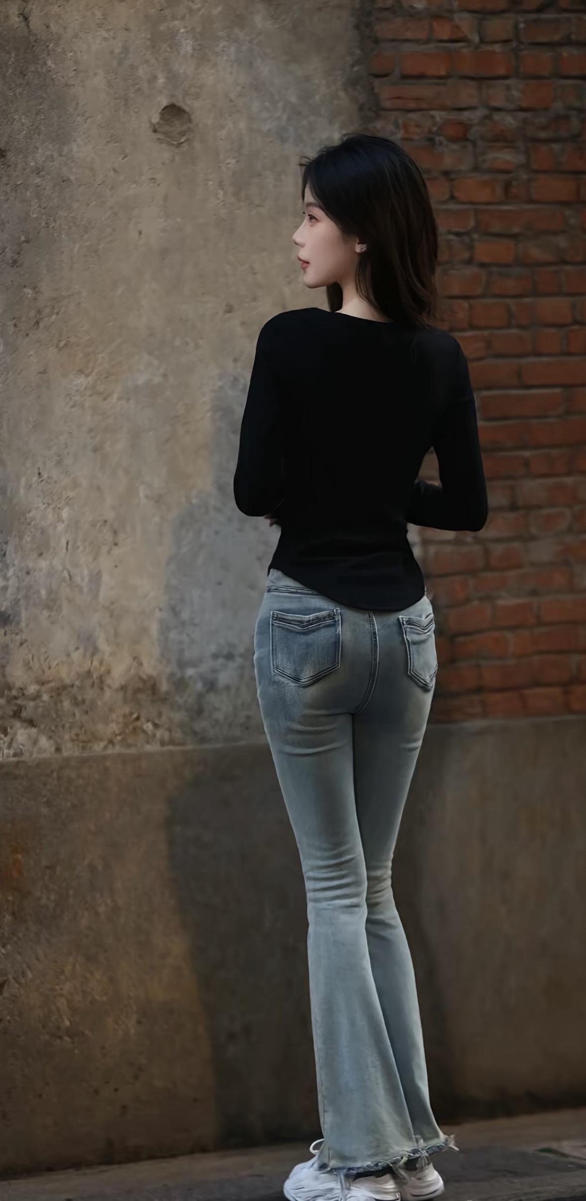 小姐姐身着藏青色上衣搭配亮片短裙,脚踩米白色尖头粗跟鞋,斜挎黑色方包,甜酷又不失