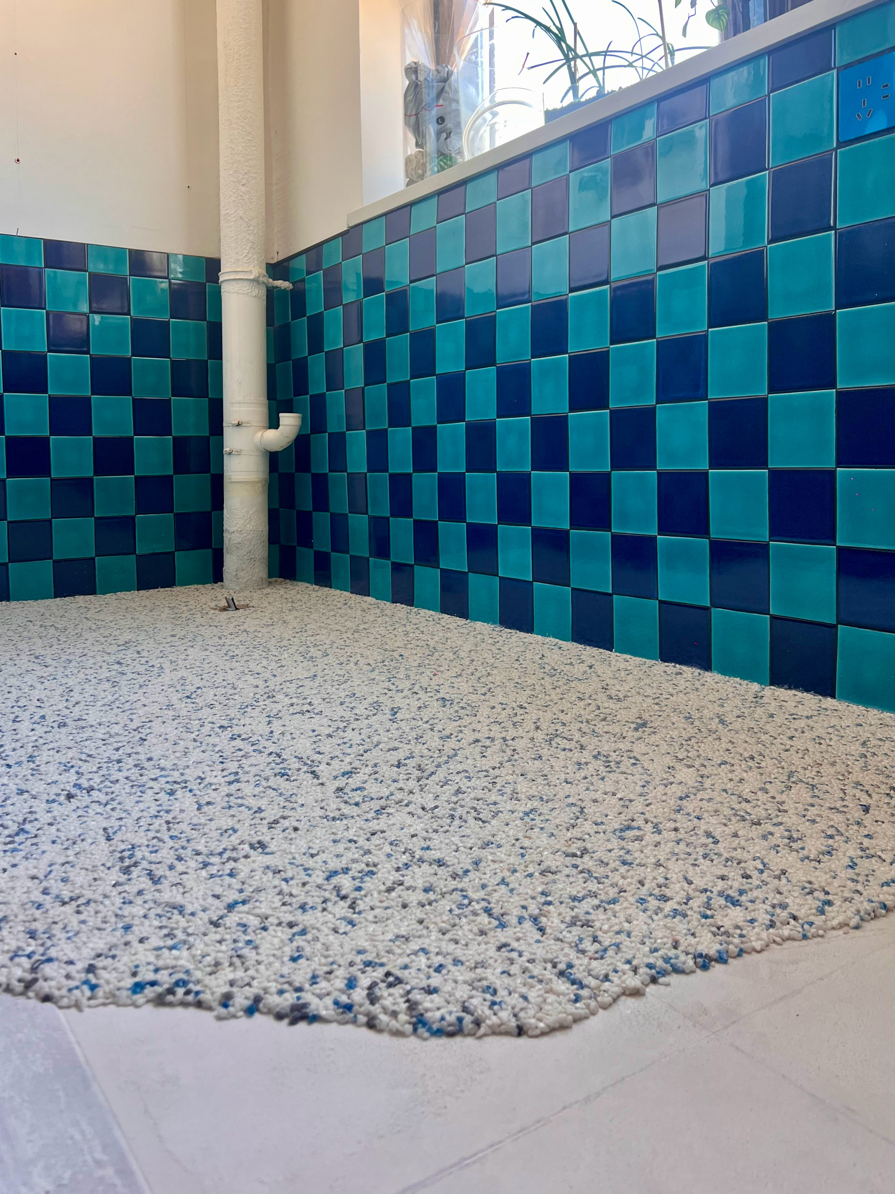 Chris最近在改造我们的生活阳台,目前水洗石铺了一半。之前这个阳台有渗水物业地产都不解决,所以他就自己解决这个问题。瓷砖是他自己切割贴的,最后两张图是他刚开始弄的时候拍的。