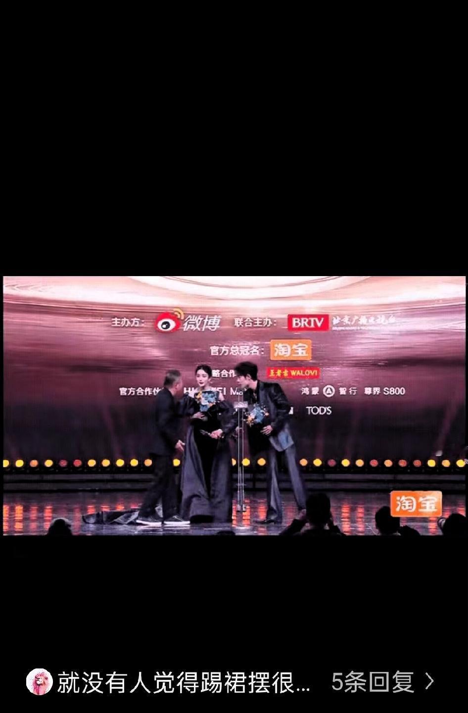 大家可能不知道,去年微博之夜,微博老总曹国伟为赵丽颖颁奖时,留意到她裙摆太长影响