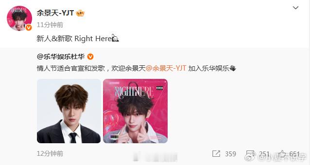 余景天官宣加入乐华真的太激动了,余景天官宣加盟乐华,这一步走得太稳,以后星途坦荡