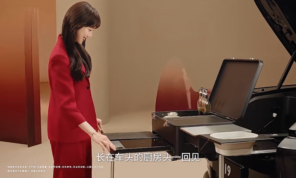 姜妍代言了零跑D19,这车空间真是太,前备箱都能放下一个移动小厨房,露营真是方便!