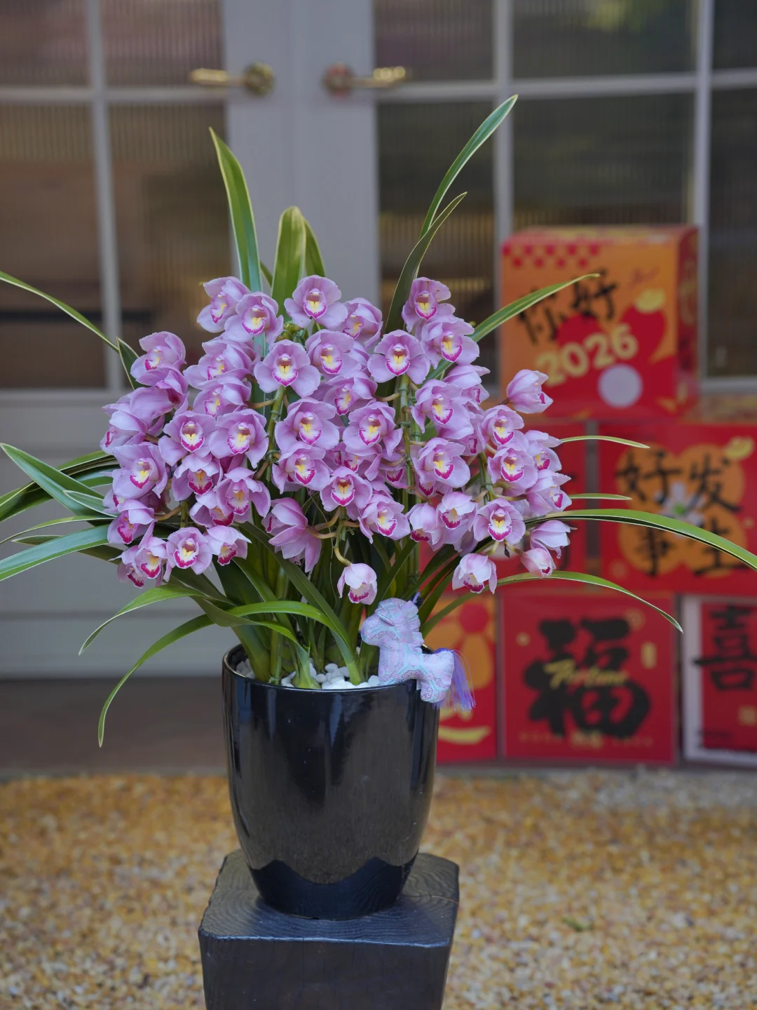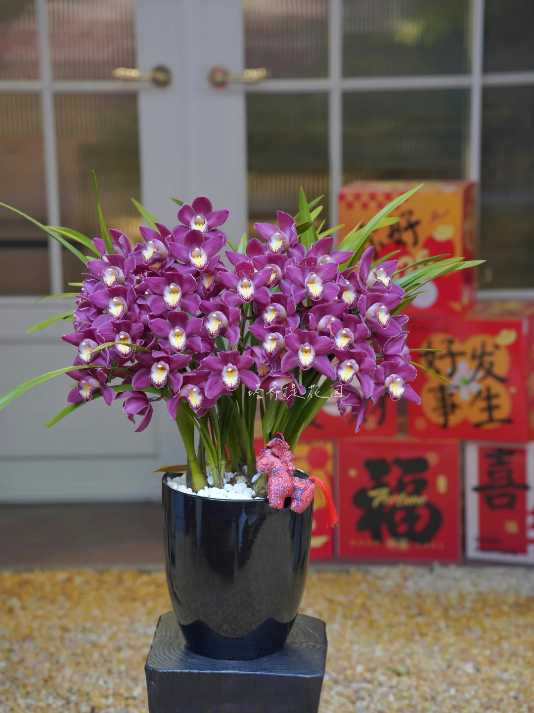 株型成半月形,花头排列有序,干净、整洁、高级感的年宵花享受。 . 我们出品的无论是蝴蝶兰还是蕙兰,叶片干净整洁,不使用化学喷剂或亮光剂等损伤叶片花朵,水源使用纯净水,用过硬的园艺专业技术让售后无忧。 . 真诚的实物现货展示,不盗用别人图片宣传自己,制作过程不参假、不作假! ——