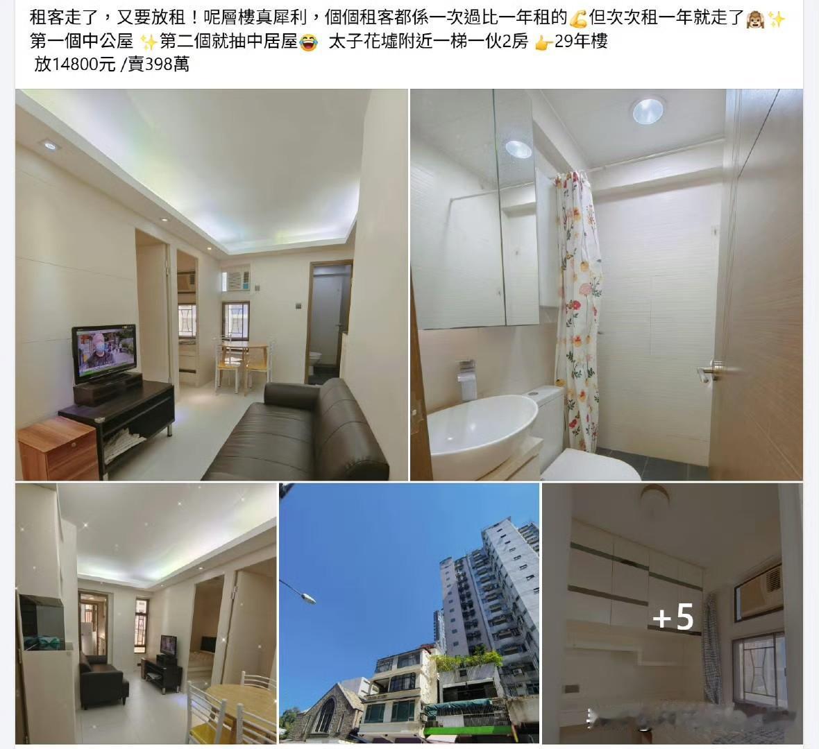 看看香港的房子,旺角太子站,30年楼龄的房子, 卖398万,租金14800元