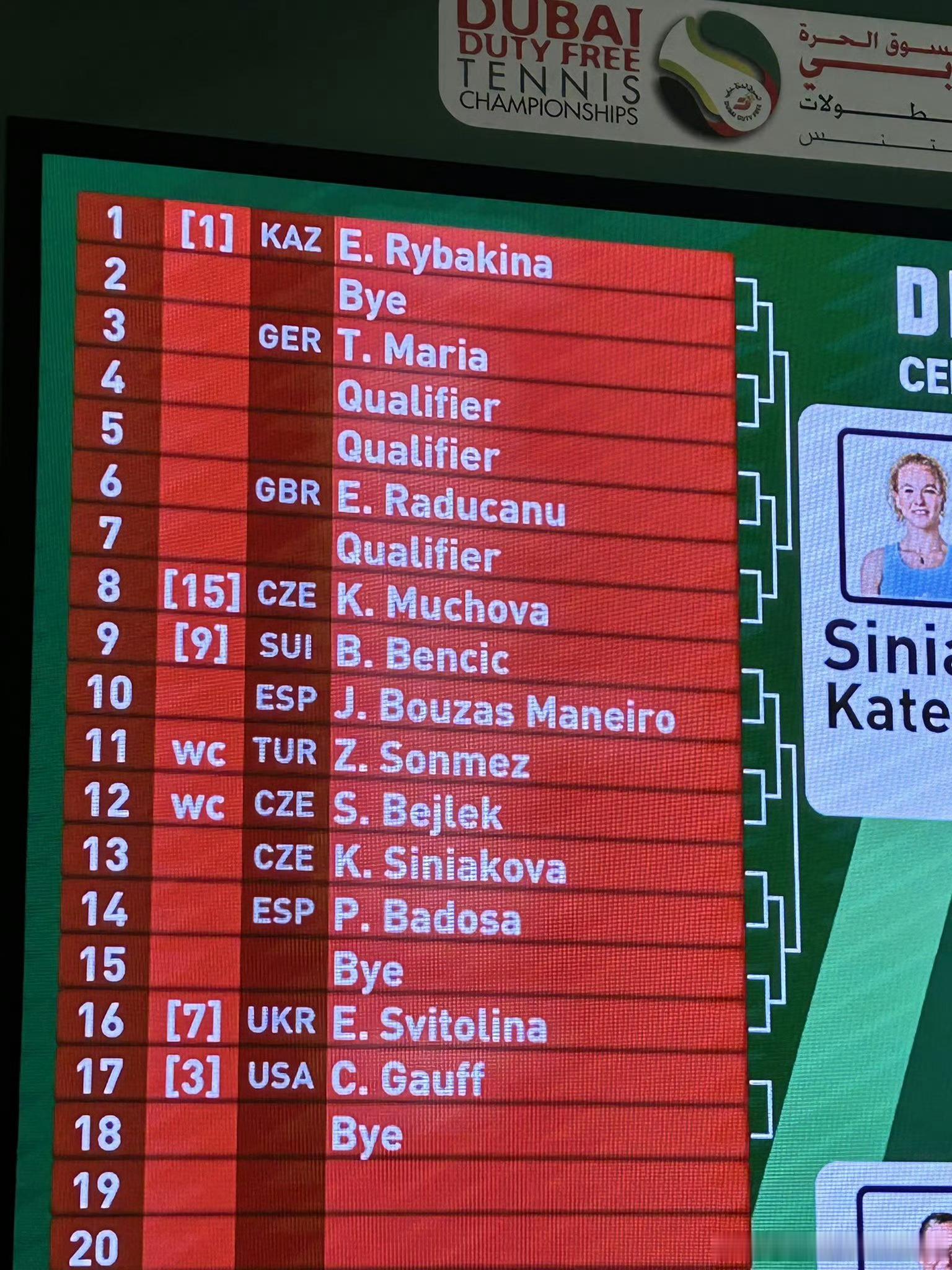 迪拜1000赛签表出炉,郑钦文首轮资格赛球员