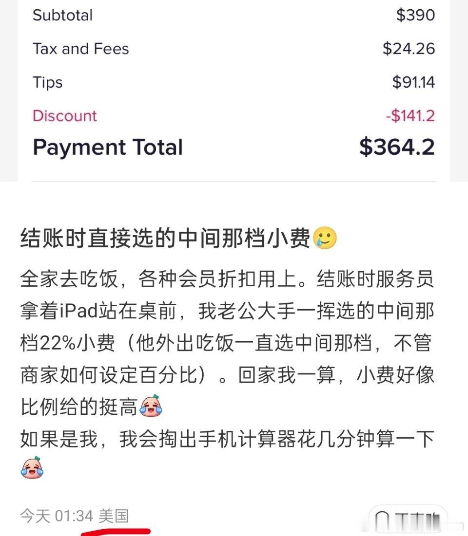 美国的小费文化是我最不能理解的。下馆子吃个饭还要帮老板给服务员发工资。