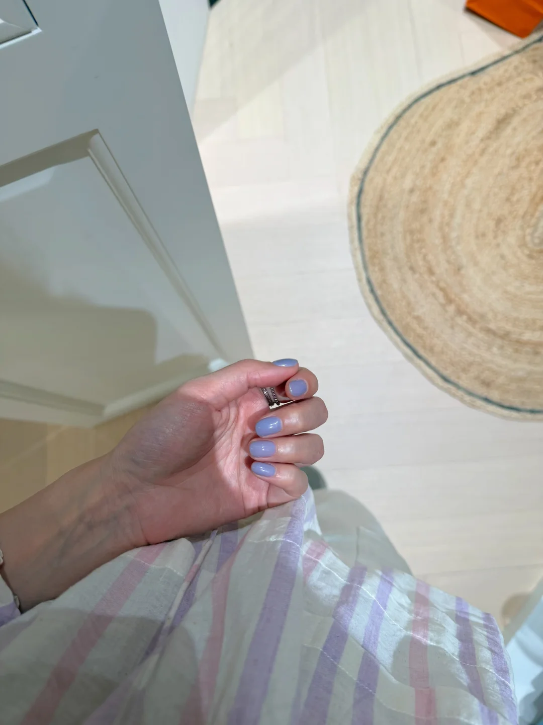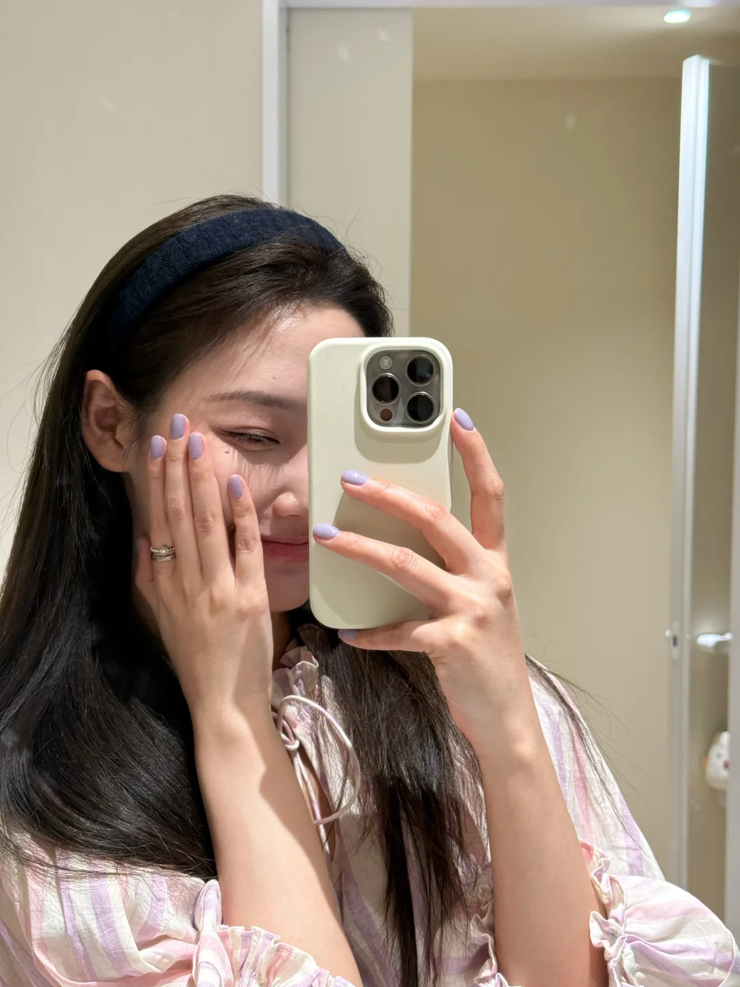 本来想做雾蓝色 但是挑不出这个颜色的胶 美甲师给我蓝色➕灰色 调出了紫色 没想到比现象中好看 且 新年紫气东来 也算是好寓意🪿🪿🪿