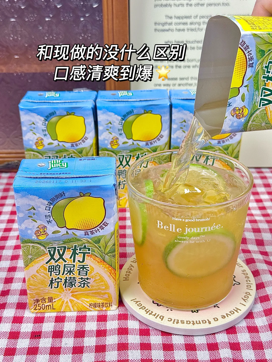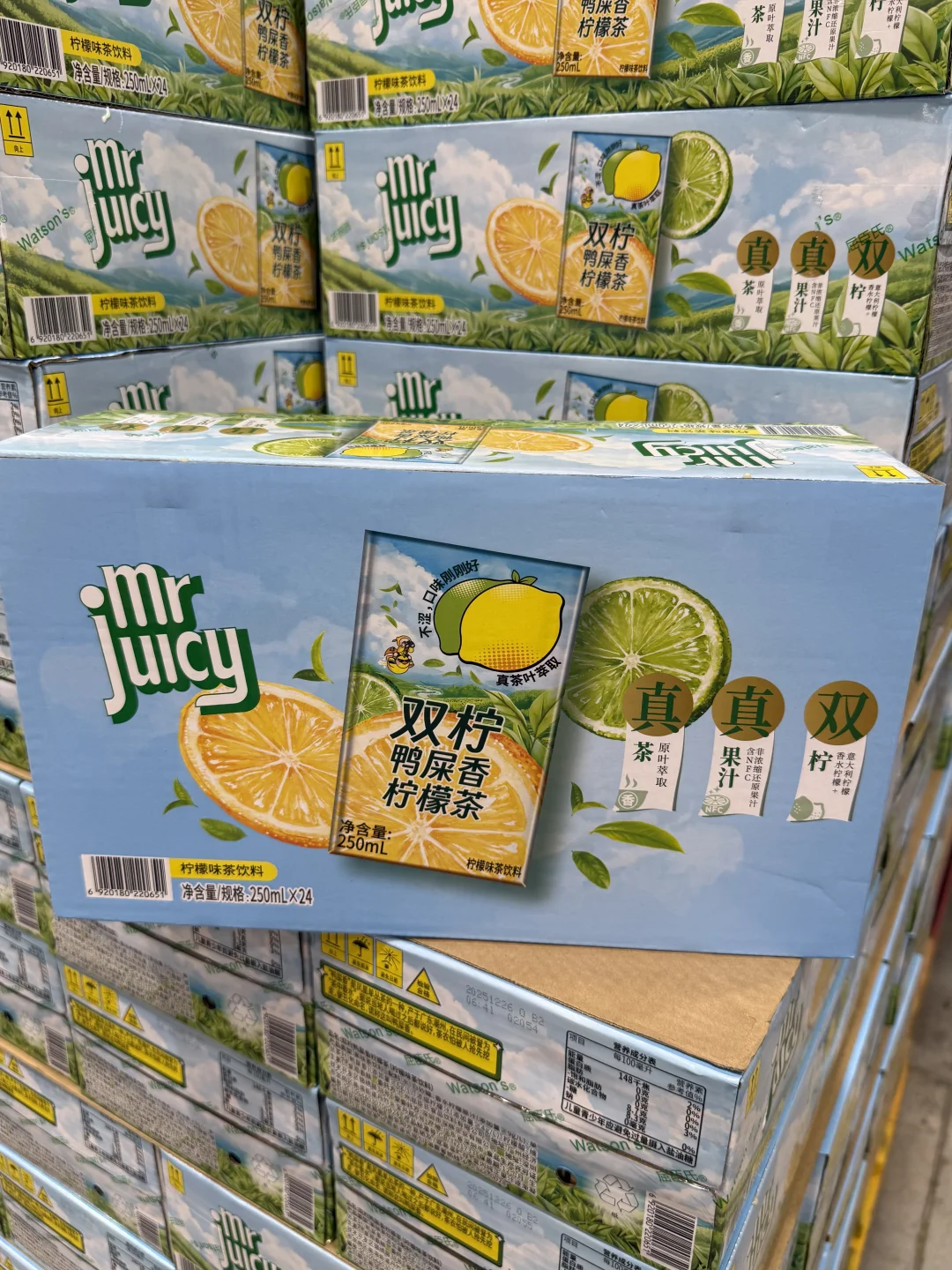 没想到这个看起来普通的菓汁先生双柠鸭屎香柠檬茶好喝哭了🥹 老广人血脉觉醒认证! 这茶底够浓、入口够顺、一点都不涩。 一整盒喝完嘴里还是干干净净的,不挂喉、不齁甜! 只有柠檬🍋皮那种清冽的香气 茶底是鸭屎香单丛原叶🍃萃取的,茶香超正还不涩口 果香茶香层层叠叠,口感巨丰富,完全不输现调的! 配料表也特实在,真茶真果汁简简单单滴 关键还是低卡的,管理期喝着也放心~ 250mL 小盒装揣包里超方便 已经囤了好几箱准备过年喝 无限回购的宝藏饮品,老广 & 茶控直接冲!