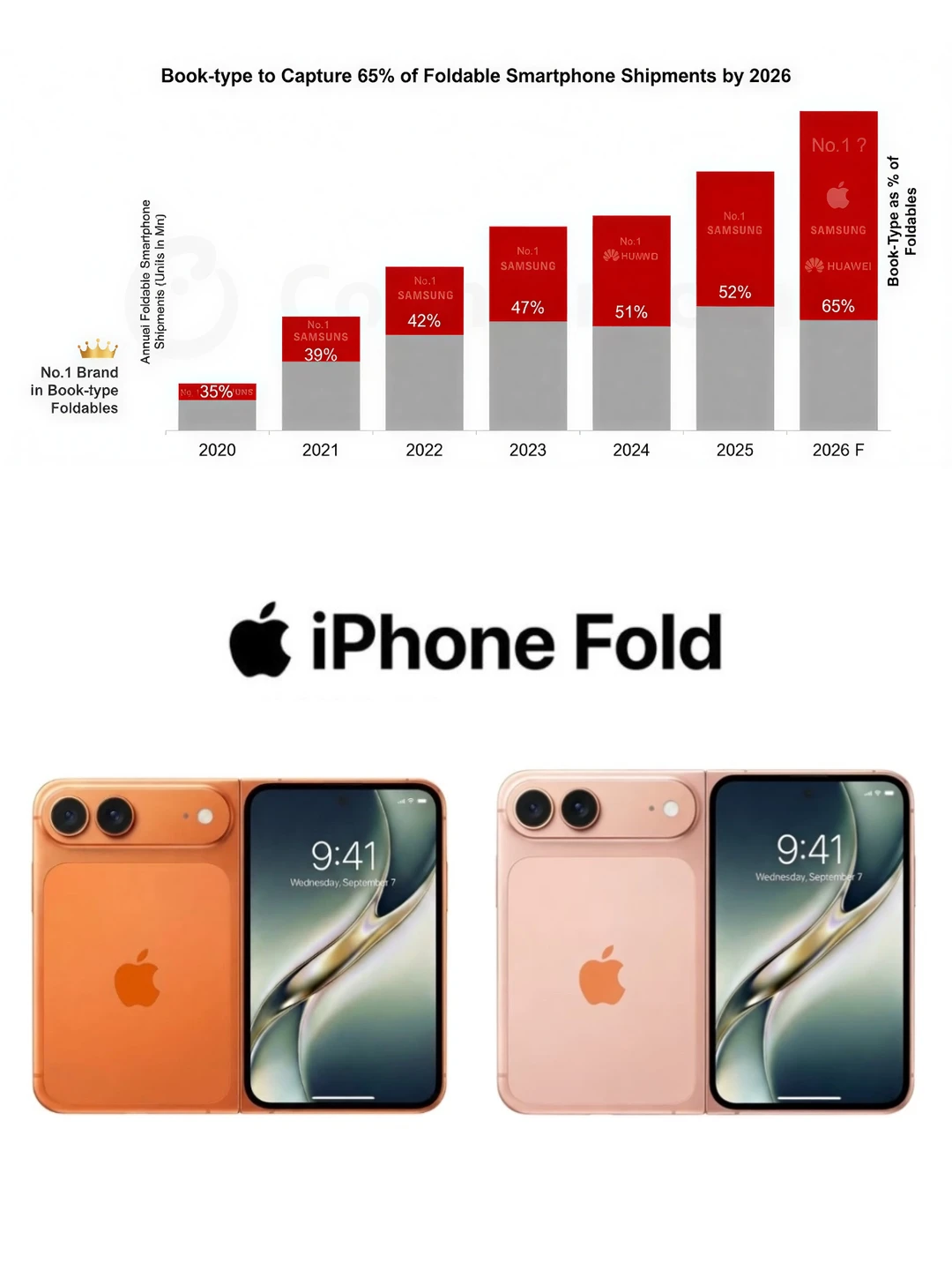 2026年被视为折叠屏手机市场的关键转折点。行业分析机构CounterPoint Research预测,今年大折叠屏市场份额将跃升至65%,科技巨头苹果的入局,毫无疑问将起到了推动作用。