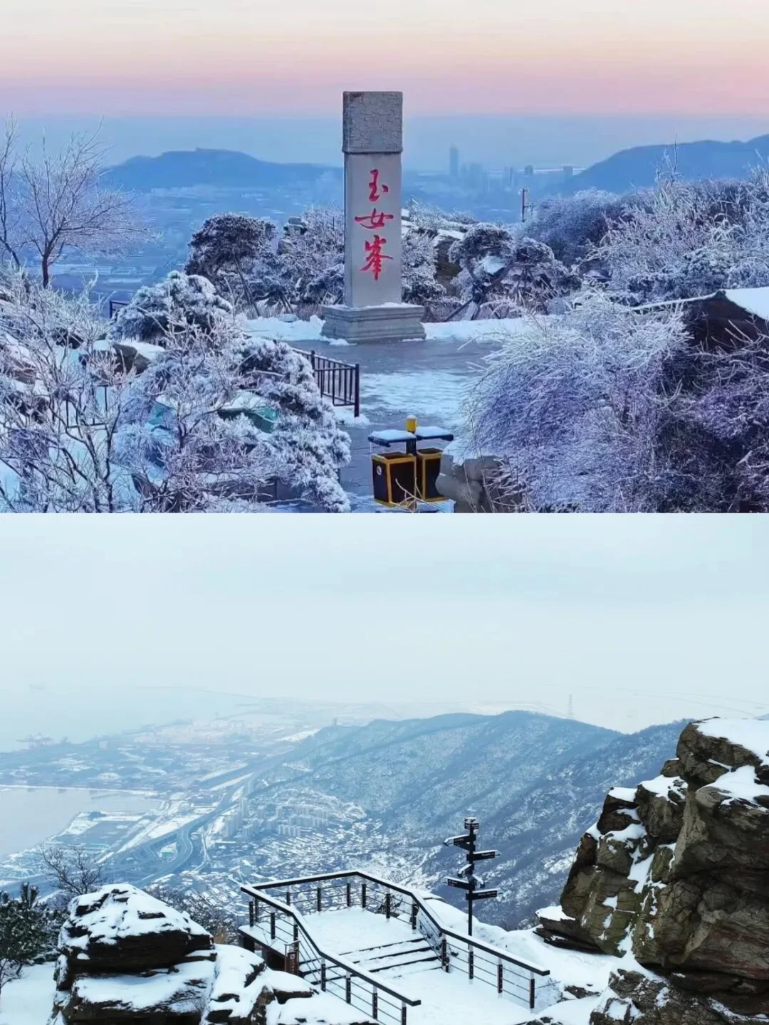 ▫️花果山 仙山变雪国!玉女峰的雾凇玉树琼枝,水帘洞冰挂垂落,偶遇不怕冷的小猴群,傲来雪境戏雪乐园能玩一整天。