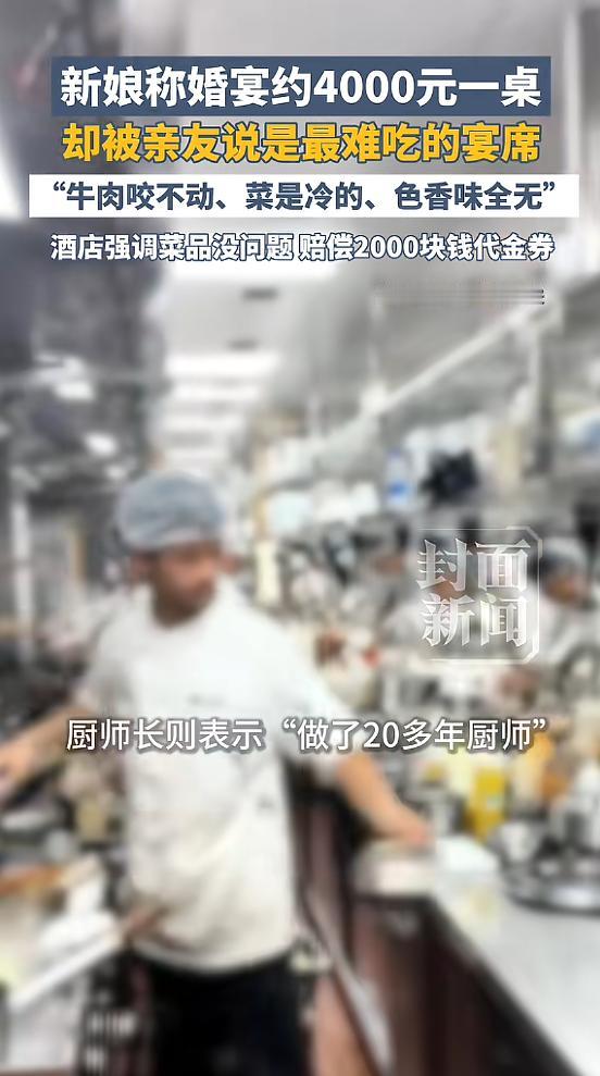 浙江金华,女子在一家酒店办婚宴,预定了11桌,每桌3988元,结果端上来的菜,大部分都是凉的,牛排是咬不动的,大龙虾很小,螃蟹是死的,亲友们说,这是他们吃过最难吃的,色香味全无的婚宴。 一张印着“3988元/桌”的结算单静静躺在桌面上,旁边或许还该摆上一盘凝结着白色油脂的冷牛排,才能凑齐这幅荒诞的静物画。 这是2026年1月的回望,镜头拉回到上个月2025年12月的浙江金华。黄女士原本以为,自己签下的是一场价值近4.4万元的体面盛宴。 11桌酒席,每桌近4000元的单价,在金华这样的城市,绝对算不上寒酸。账单背后的心理账户很清晰:这是为了人生中最重要时刻的“面子”。 然而,现实给了这位新娘一记响亮的耳光。原本承诺的“热气腾腾”,变成了宾客口中“没吃饱”的尴尬回忆。数字与实物的巨大温差,构成了这场婚礼最冰冷的底色。 我们常说“一分钱一分货”,但在婚庆这个充满信息差的市场上,这个定律往往会失效。黄女士当初拍板这家酒店,看中的是那里的水晶灯、红地毯,还有那一层看似靠谱的“品牌光环”。 她在环境上投入了巨大的关注,甚至特意把主厨叫出来面谈,千叮咛万嘱咐:必须热,必须新鲜。这听起来像个君子协定,双方点头,握手,仿佛契约已成。 但她唯独漏算了一步试菜。为了省下那几千元的“试吃费”,或者单纯是因为对大品牌的盲目信任,她放弃了这唯一的“质检”环节。 这个决定,直接把婚礼当天的宴席变成了一场不可控的“开盲盒”。在那一刻,商业世界的残酷逻辑展露无遗:没有硬性的试错成本做抵押,口头的承诺在利润面前薄如蝉翼。 当天的婚礼现场,前半程的仪式确实如她所愿,盛大、浪漫,宾主尽欢。可一旦聚光灯熄灭,服务员端着托盘鱼贯而入时,画风瞬间崩塌。 让我们像法医一样,解剖这桌让黄女士颜面尽失的“残席”。这根本不是口味差异的问题,而是工业化餐饮流程的全面失控。 首先是温度。12月的江南湿冷刺骨,端上来的菜品却大部分是冰凉的。这很难不让人怀疑,后厨是否为了追求出餐效率,大规模使用了预制菜,或者是过早备餐却没做保温。 接着是食材的“尸检”。牛排坚硬如铁,宾客咬都咬不动,仿佛在咀嚼一块老旧的橡胶。螃蟹不仅是死的,还散发着令人作呕的异味。至于那只作为门面的大龙虾,小得可怜,肉少到根本无法分盘。 面对这一桌“色香味全无”的呈堂证供,酒店方的反应堪称服务业傲慢的教科书。主厨两手一摊:“我只负责监管”。销售人员则拿出了万能挡箭牌:“众口难调,个人口味差异嘛。” 试图用“主观差异”来掩盖“客观劣质”,这是商家在推卸责任时最常用的诡辩术。但当大多数宾客都在摇头,甚至有人直言“这是吃过最难吃的喜酒”时,这种辩解就显得苍白且滑稽。 博弈的焦点最终落在了赔偿方案上,也最能照见商家的底色。黄女士提出退款5000元,这并非狮子大开口,而是基于违约责任的合理追偿。 不管是海参盅还是炸乳鸽,既然没有达到“热菜”和“新鲜”的基本标准,就是严重的货不对板。对此,酒店抛出了一个令人啼笑皆非的方案:赔偿2000元代金券。 这个逻辑简直荒谬到了极点。用“再次消费”来补偿一次“灾难级的消费体验”?这就好比你在一碗面里吃出了苍蝇,老板说:“对不起,下次你来吃面我给你打八折。”这不仅不是补偿,更像是一种二次侮辱。 黄女士拒绝代金券的理由简单而有力:难吃的菜,为什么要再来吃一次?从法律的标尺来看,根据《民法典》,酒店提供的服务严重偏离了合同约定的“全面履行义务”。那些死蟹和冷菜,已经构成了根本性违约。 5000元的诉求,是对这场遗憾婚礼的一点心理抚慰,更是对契约精神的一次强制执行。这件事还没完,但它给所有正在筹备婚礼的新人敲响了警钟:在光鲜亮丽的排场背后,永远不要低估商家为了压缩成本而牺牲体验的决心。 那一盘盘冰冷的牛排,不仅冷了宾客的胃,也彻底凉了消费者的心。