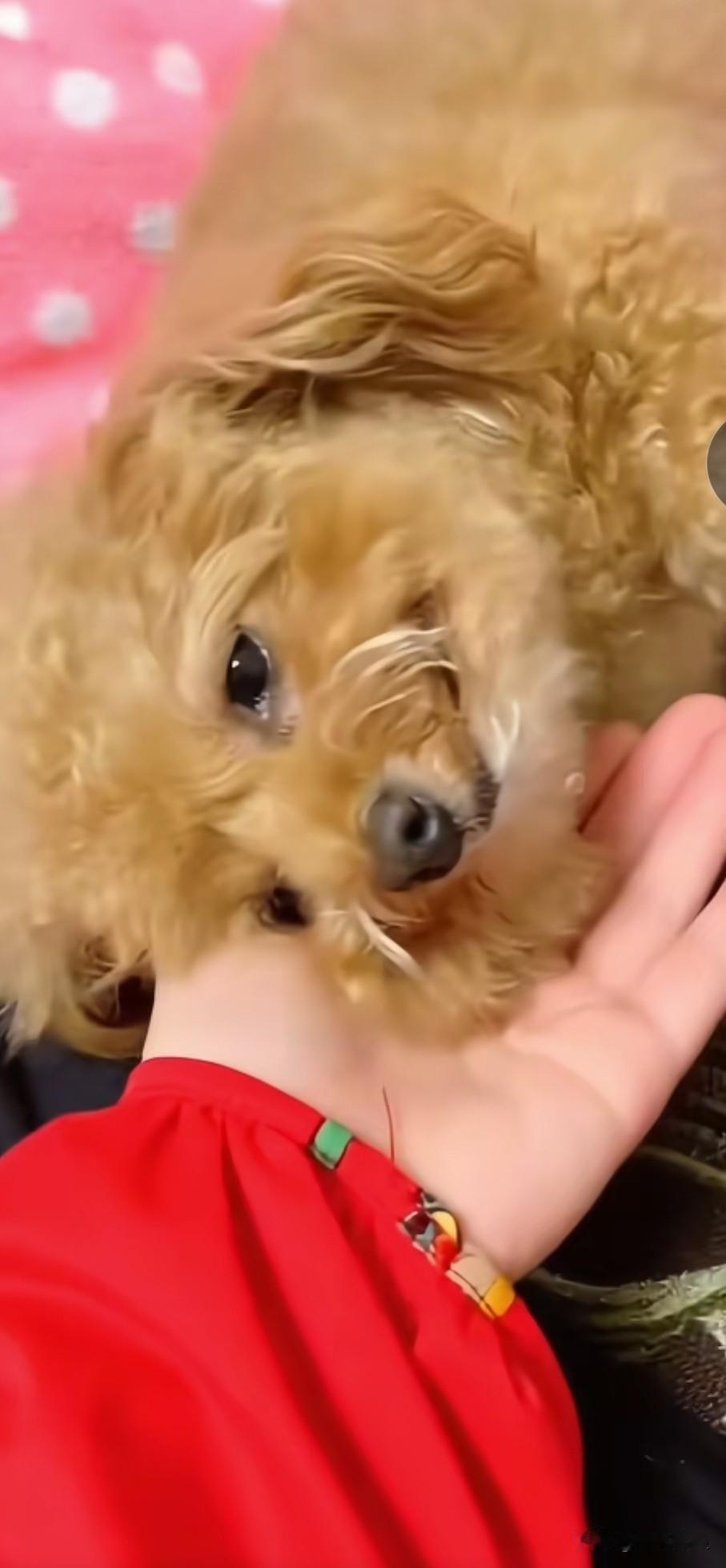 老泰迪狗在生命的最后一刻,将爪子搭在了主人的手掌上,落下两滴眼泪,随后依偎在主人掌心,带着万分不舍的神情断了气。泰迪狗子 老年犬泰迪