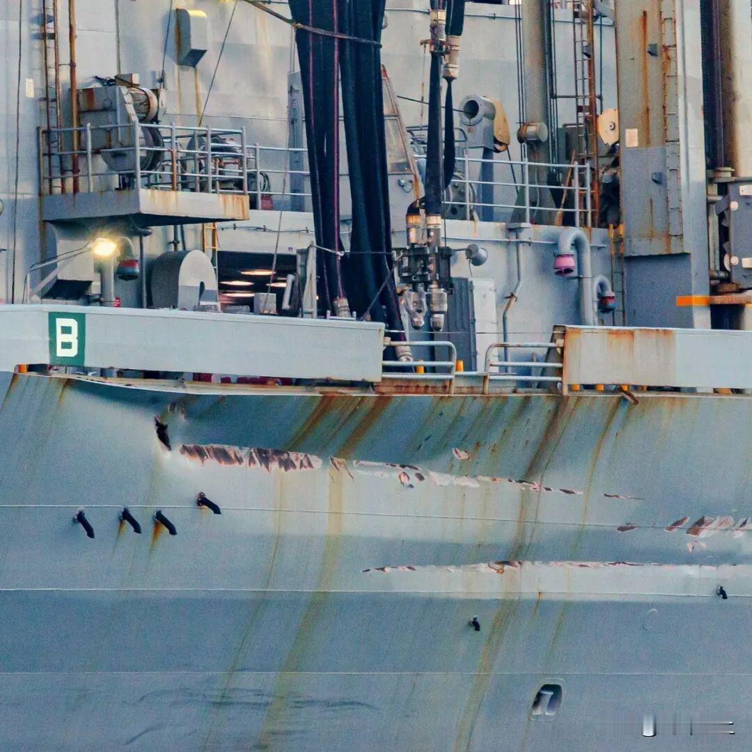 前几天在加勒比海相撞的“特鲁斯顿” 号驱逐舰与 “供应” 号补给舰 伤情不是很严重,但是美军特有的三氧化二铁隐身涂层清晰可见,这可是美军独有的战斗力倍增器,涂层越厚,资历越老,战斗经验越丰富