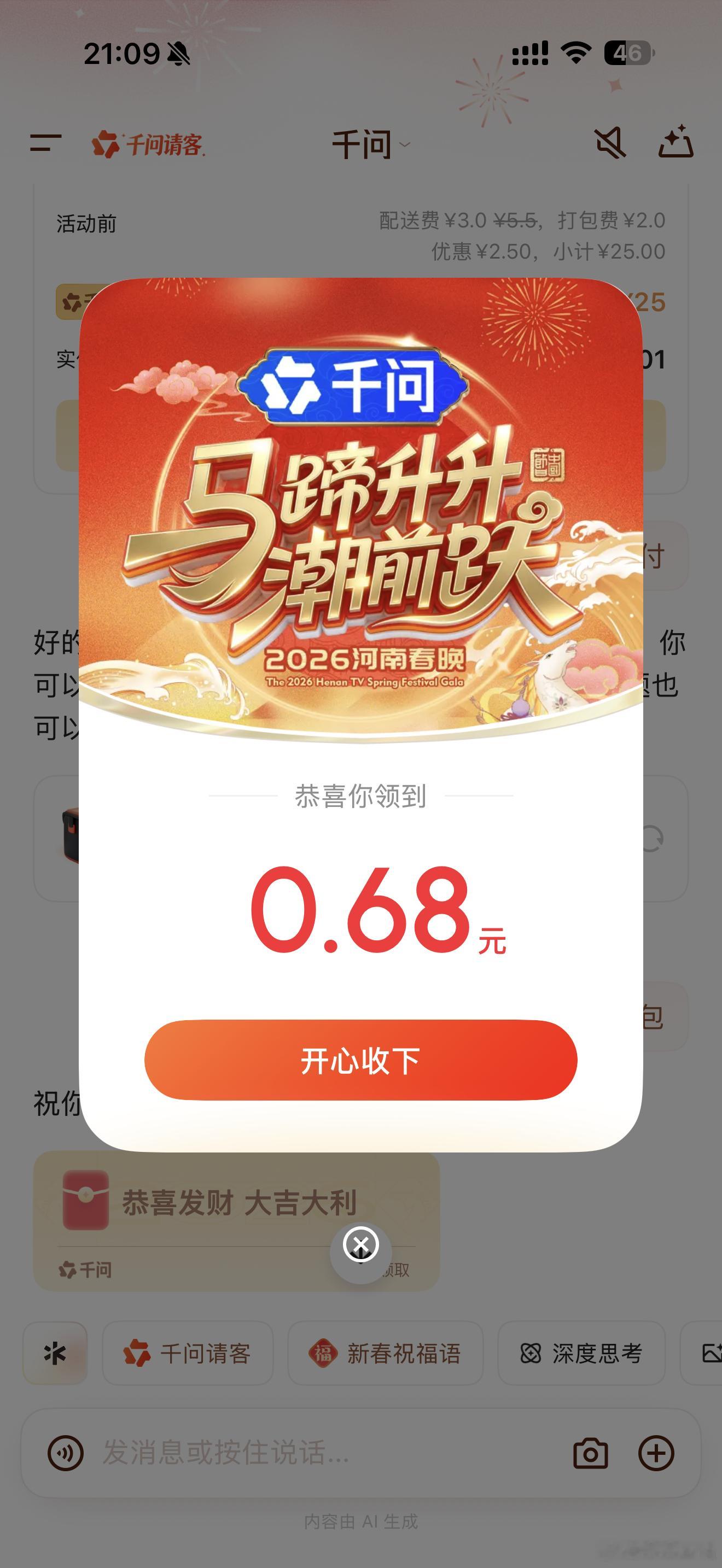 千问红包千问这波又是红包又是超级免单简直不要太给力,千问以后就永远就是我的常驻了!
