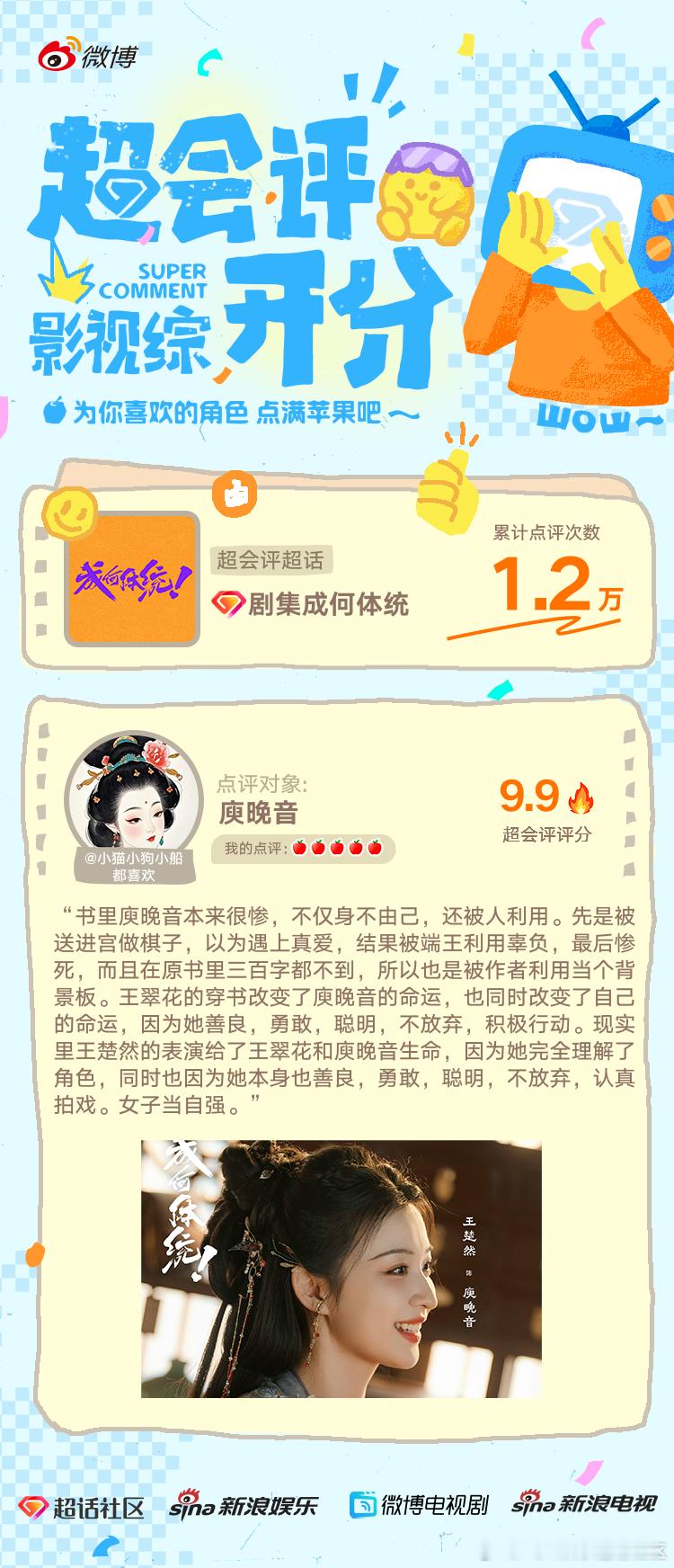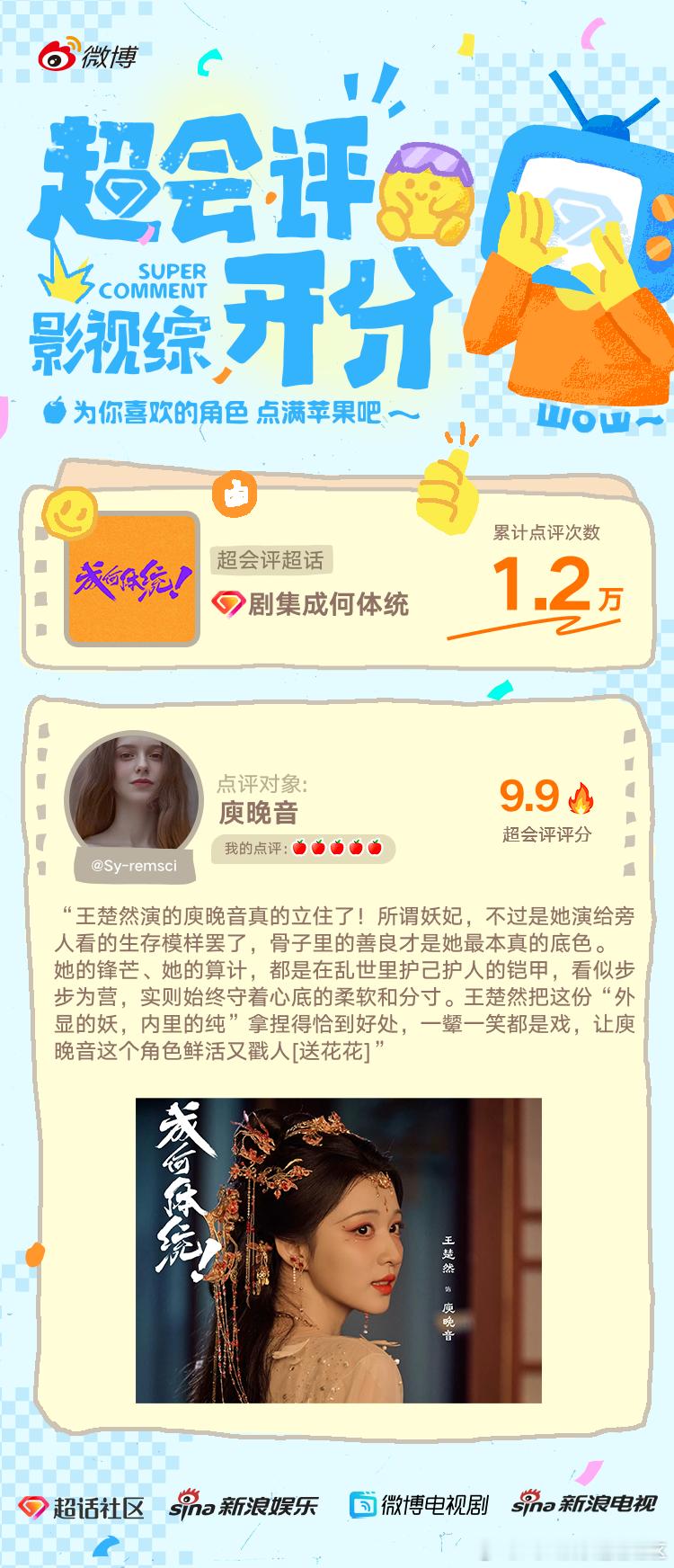 影视综超话超会评开分 恭喜以下uu们为影视综超会评贡献的优质内容,以下被公示的优质点评内容均可获得50元现金激励(此排名不分先后顺序)~